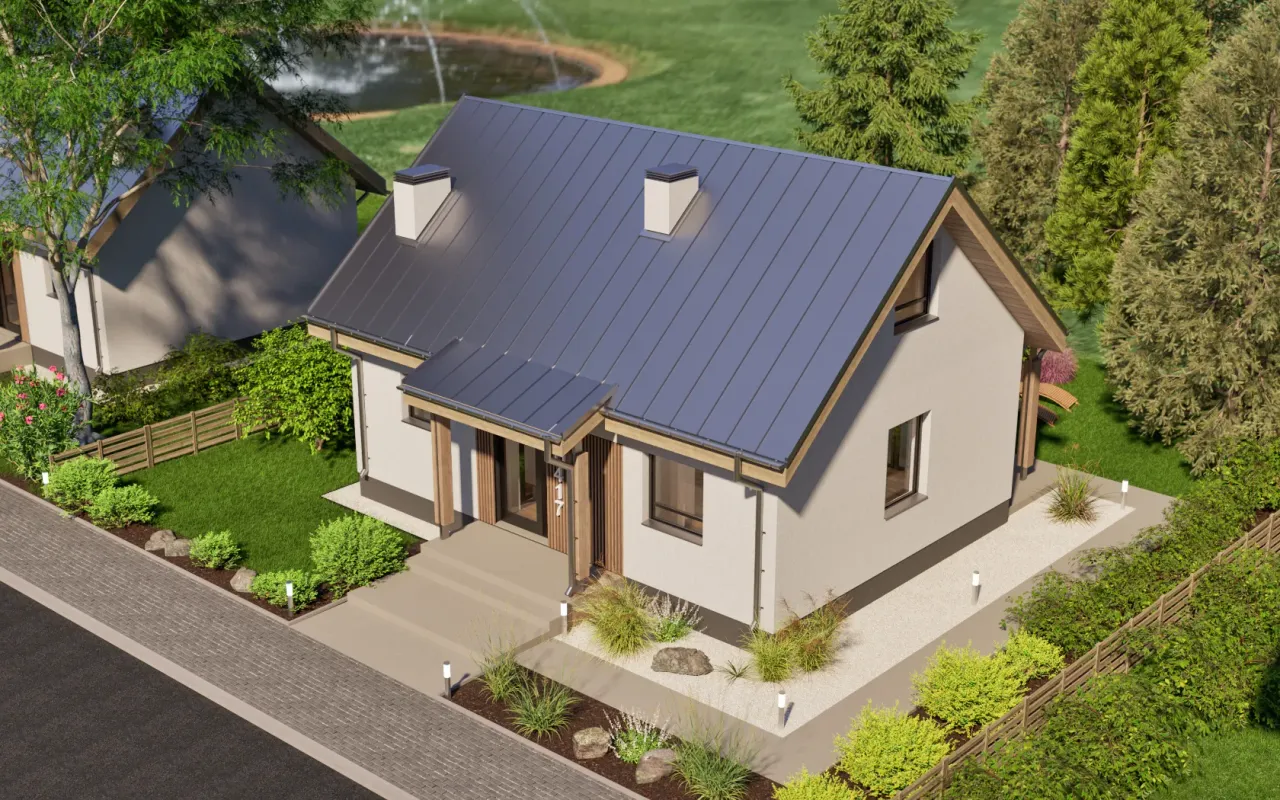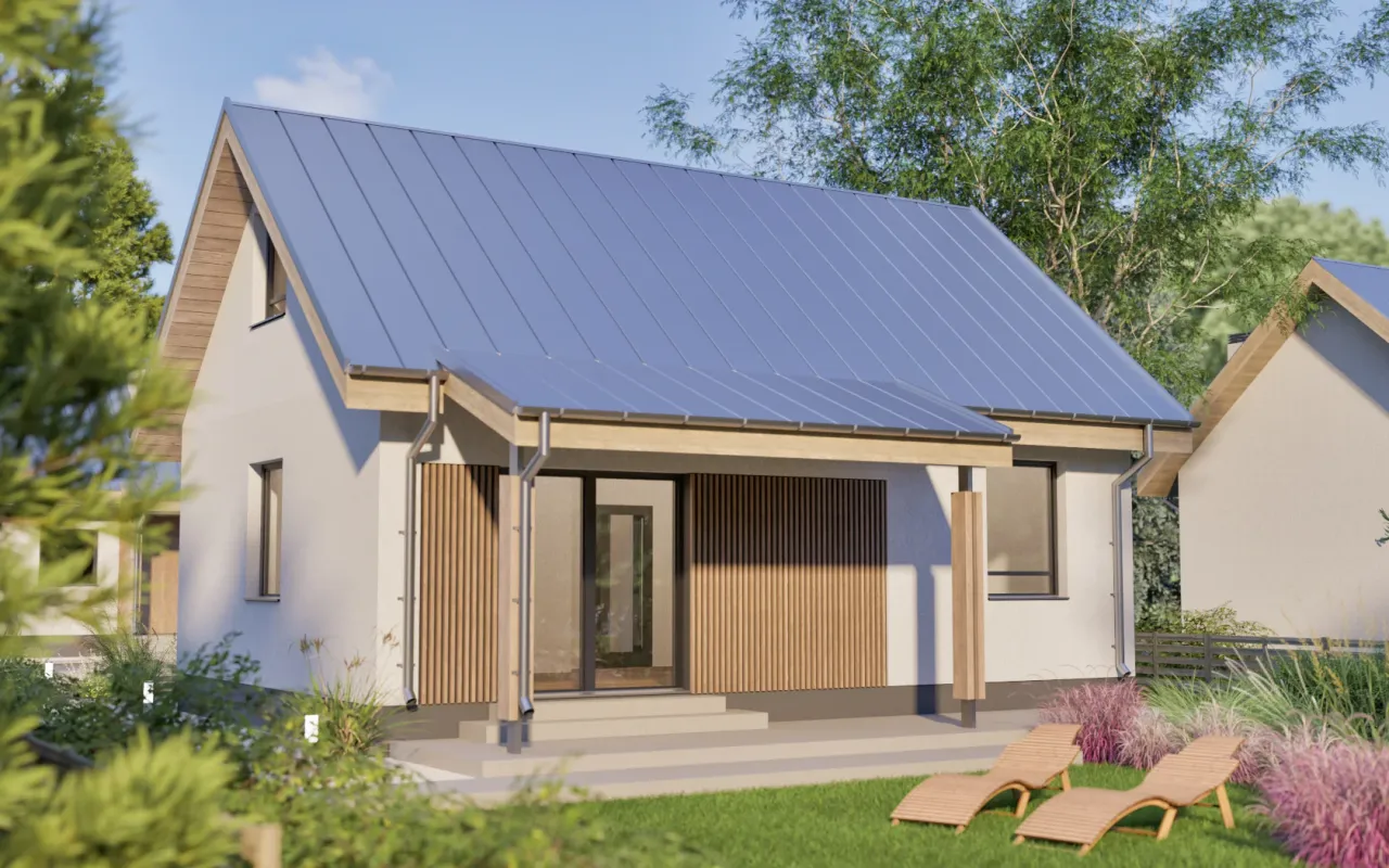 - Pokrycie dachu: blacha pionowa na rąbek stojący.