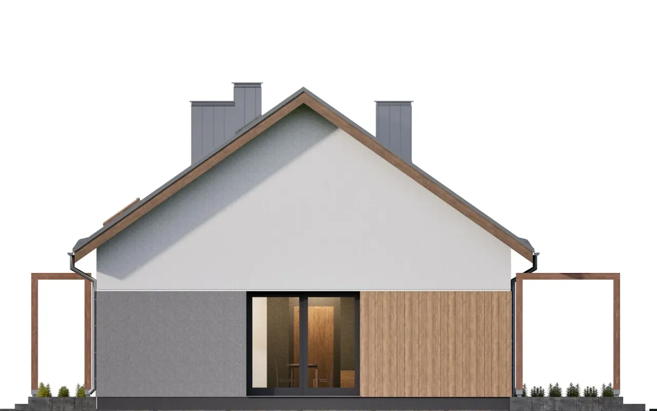 - Elewacja: tynk elewacyjny cienkowarstwowy, na fragmentach deskowanie pionowe.