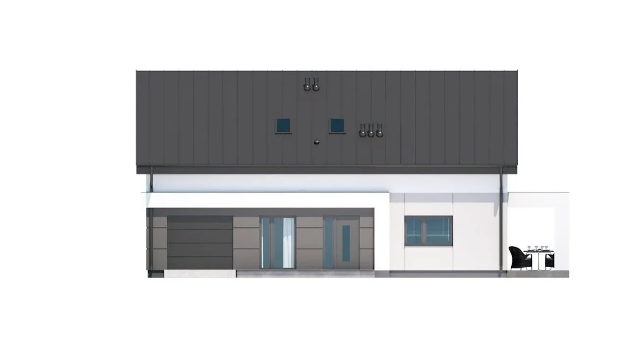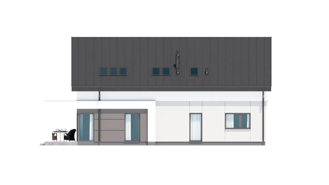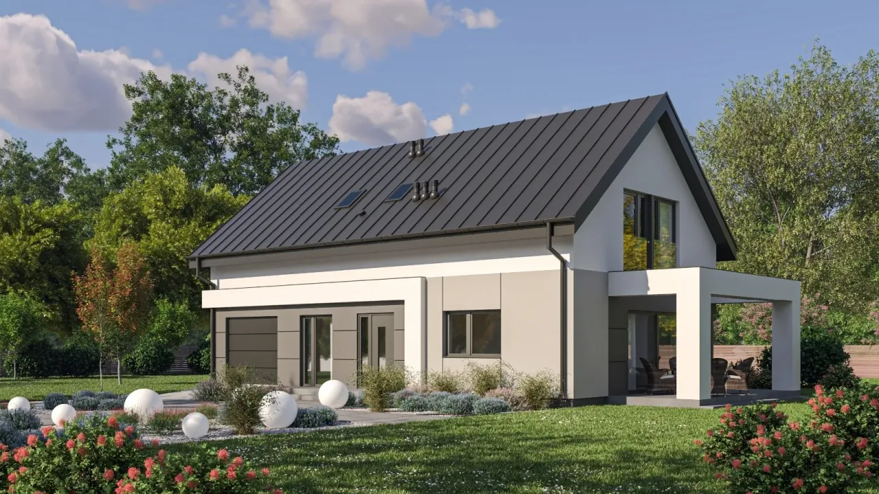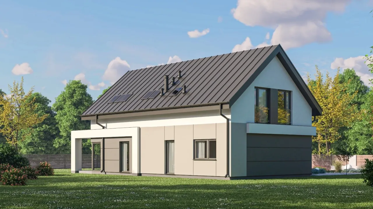 - Pokrycie dachu: blacha łączona na rąbek stojący.