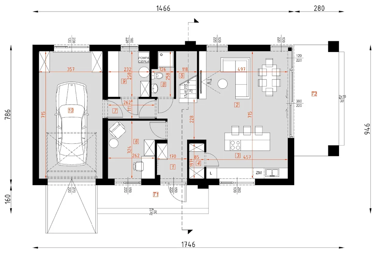 - Ogrzewanie: pompa ciepła.