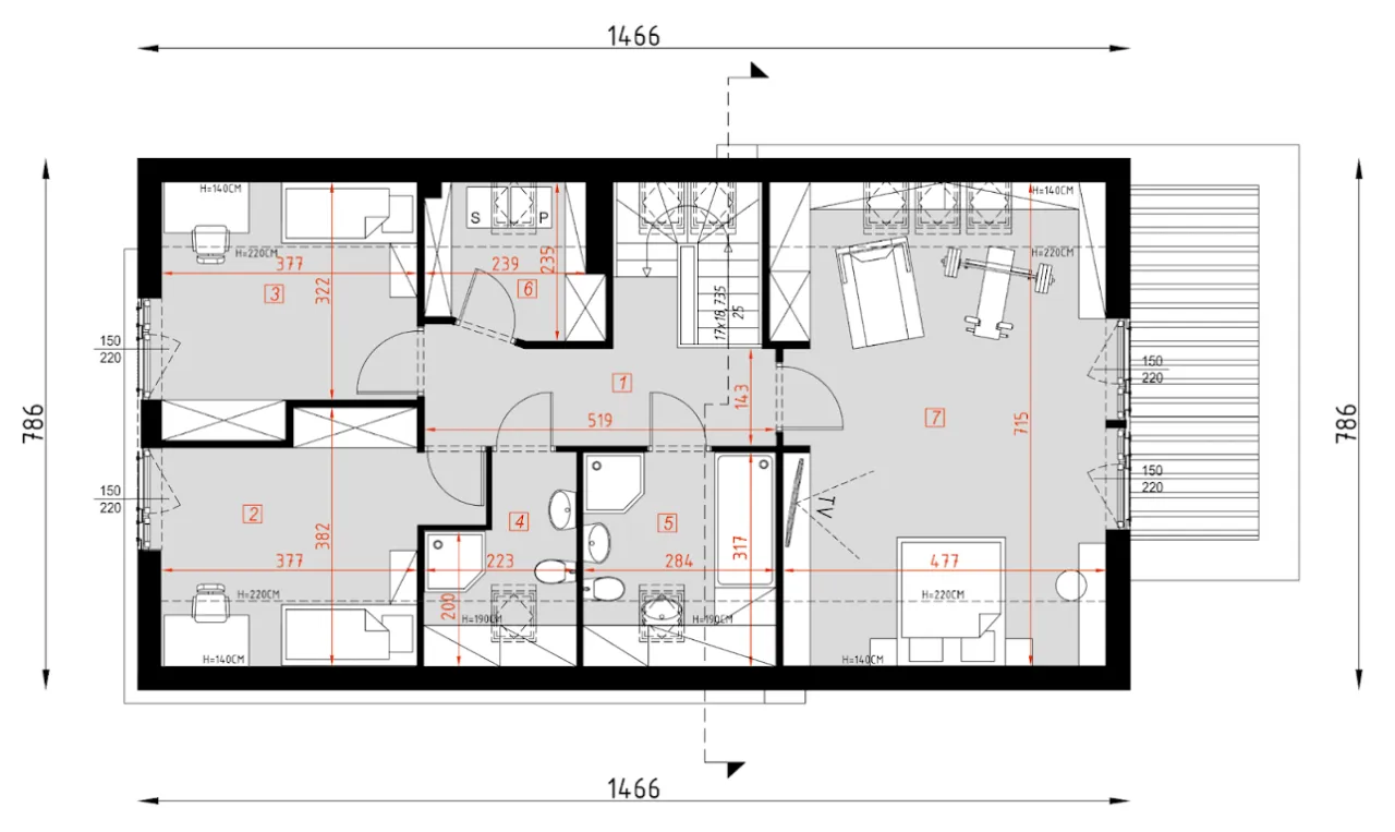 - Konstrukcja dachu: krokwiowo-jętkowy.