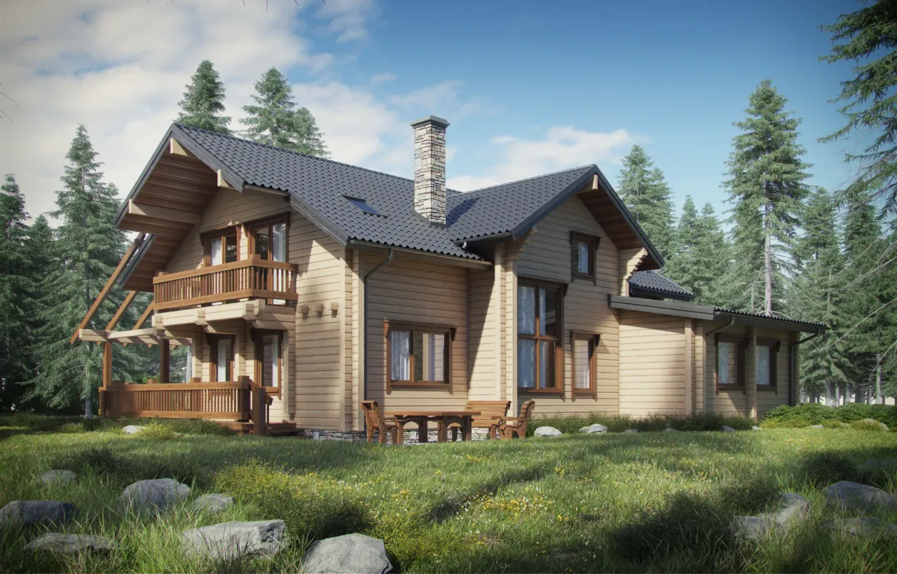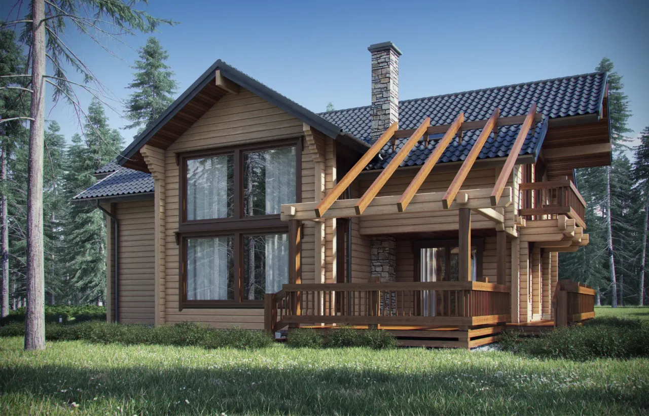 - <strong>ściany zwnętrzne:</strong> bal drewniany kwadratowy