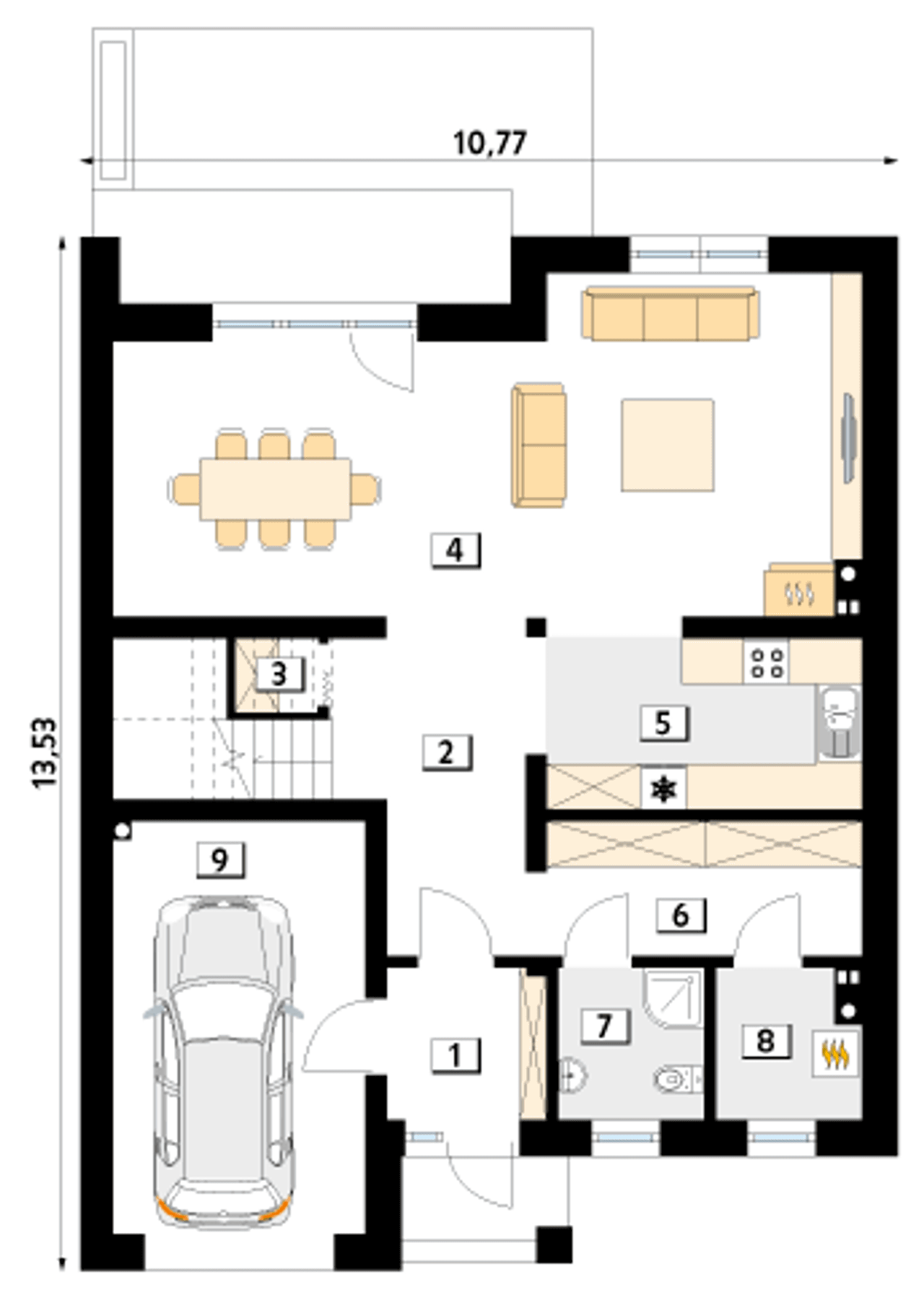 Szerokość budynku 10.77 m |