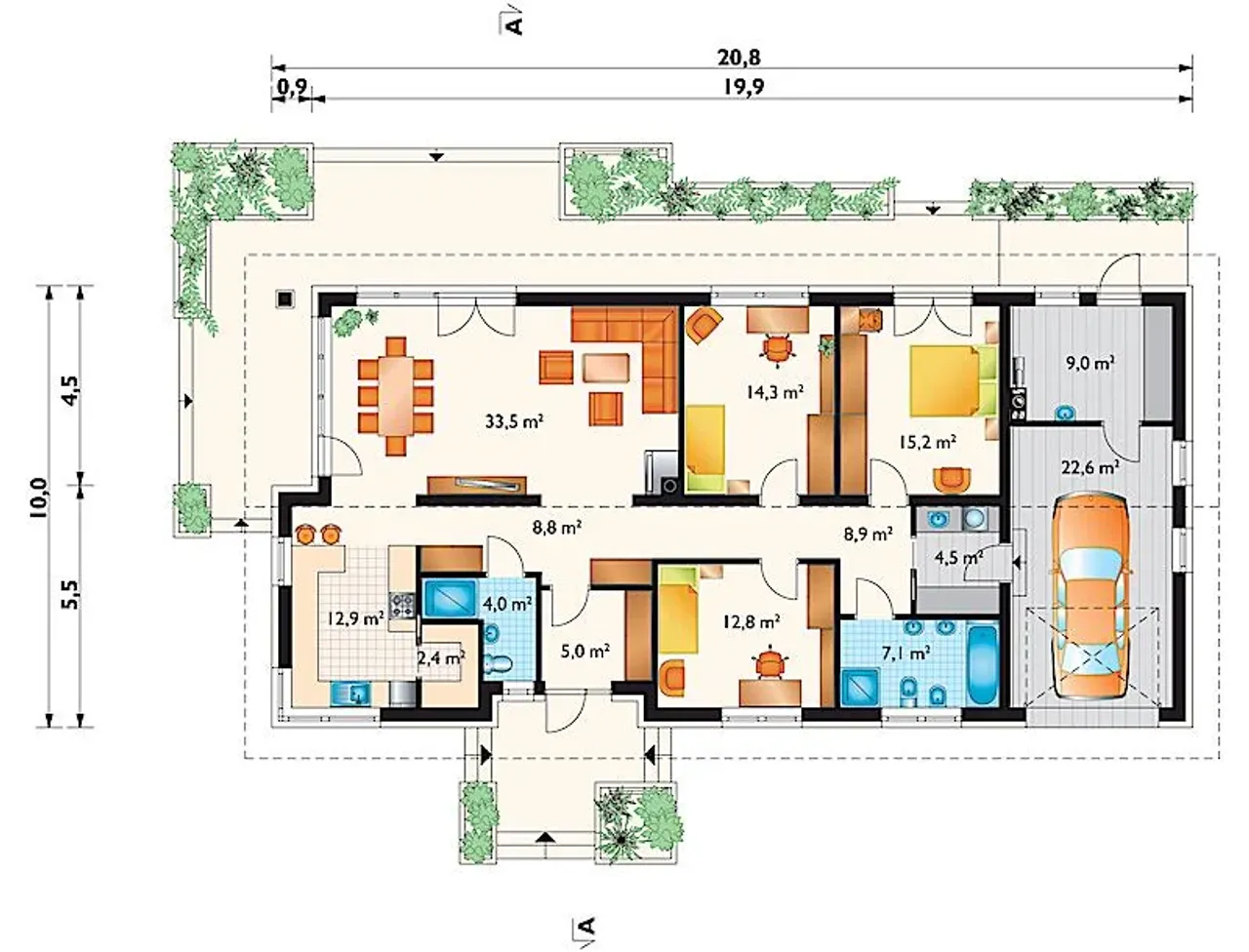 - elewacje - pokazują dokładny wygląd domu od frontu, z tyłu i z boków