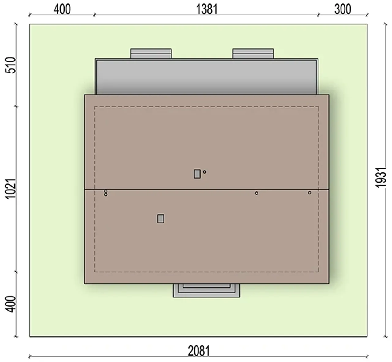 Wypełnij formularz i otrzymaj rysunki w pdf z dokładnymi wymiarami budynku i pomieszczeń (długość, szerokość, wysokość) dla projektu Daktyl 2 modern