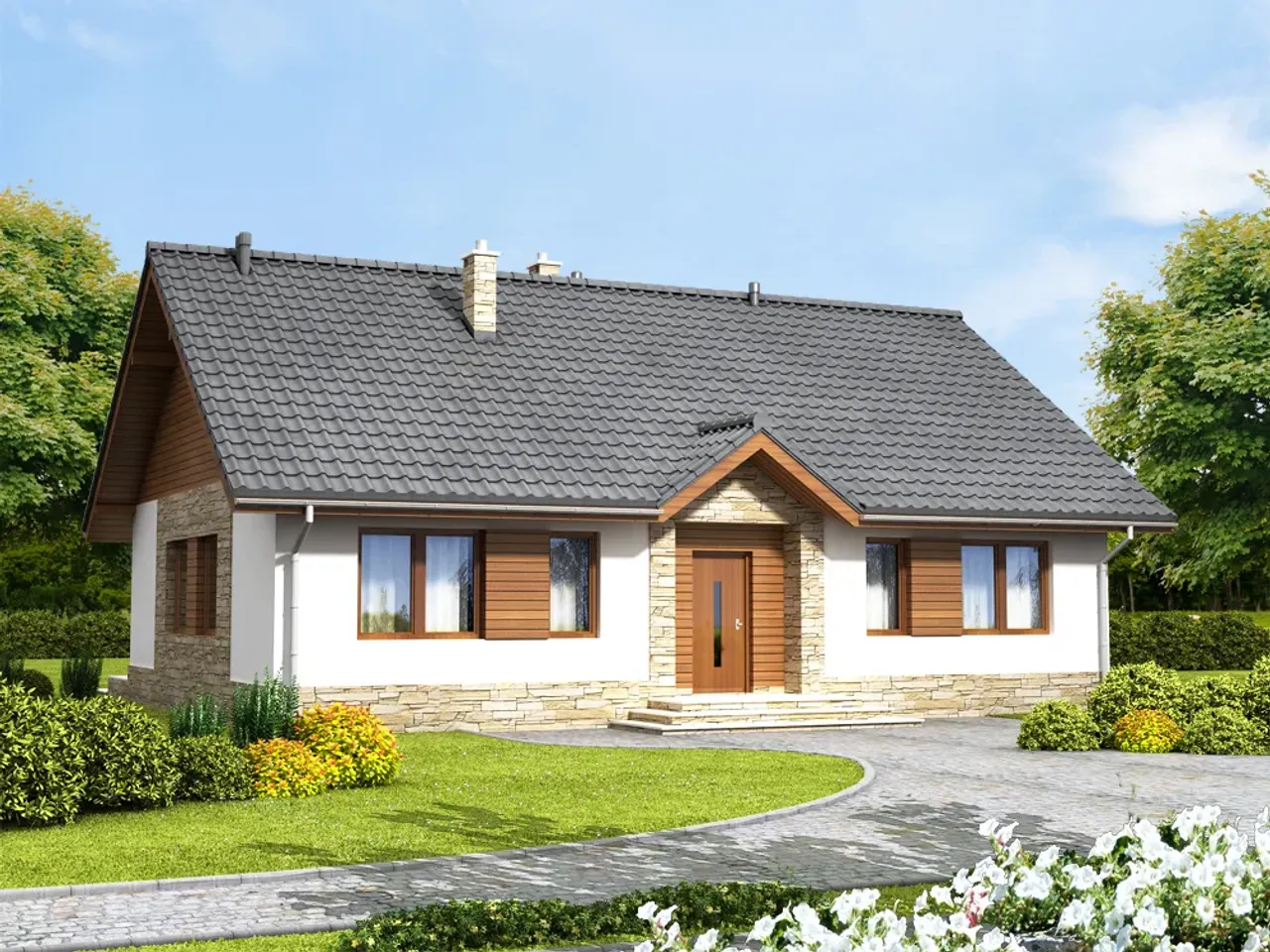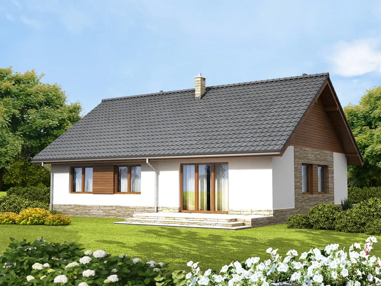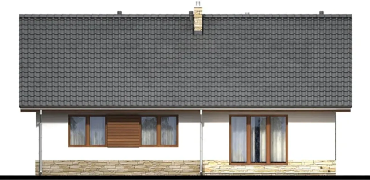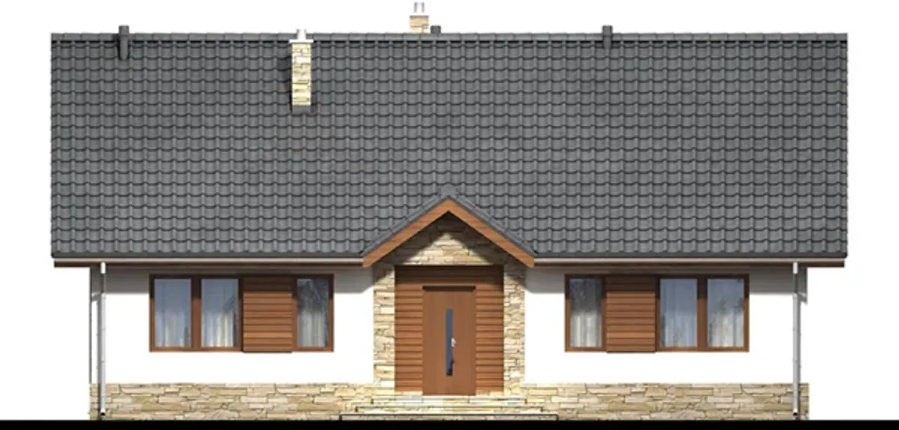 Dom parterowy na bazie projektu Daktyl 4 to doskonałe rozwiązanie dla rodzin, które cenią wygodę użytkowania oraz przemyślane, nowoczesne rozwiązania architektoniczne. Konstrukcja oparta na żelbetowych fundamentach i ścianach z pustaków ceramicznych pozwala czuć się bezpiecznie w każdym sezonie. Atutem jest także drewniana konstrukcja dachu z pokryciem ceramiczną dachówką - solidna, dobrze izolująca i atrakcyjna wizualnie.