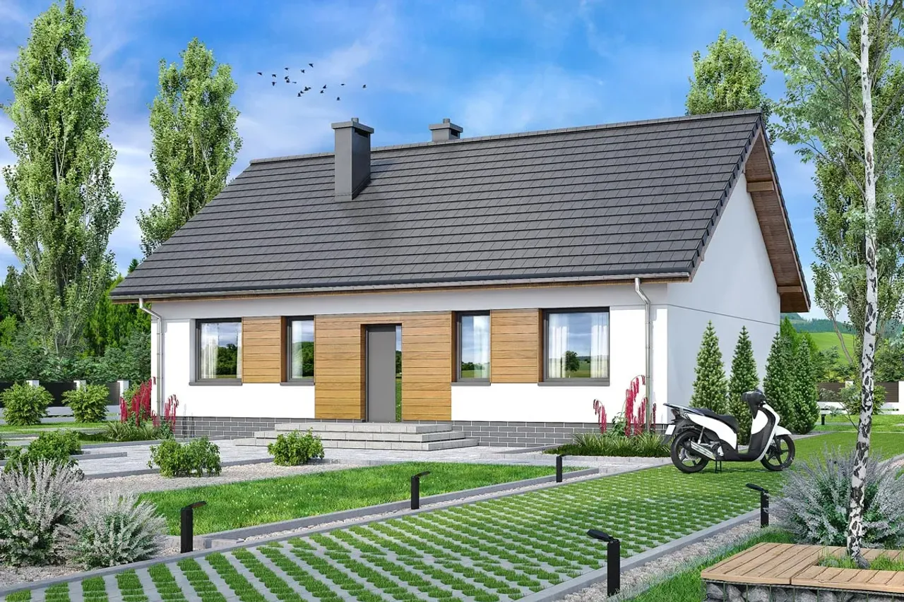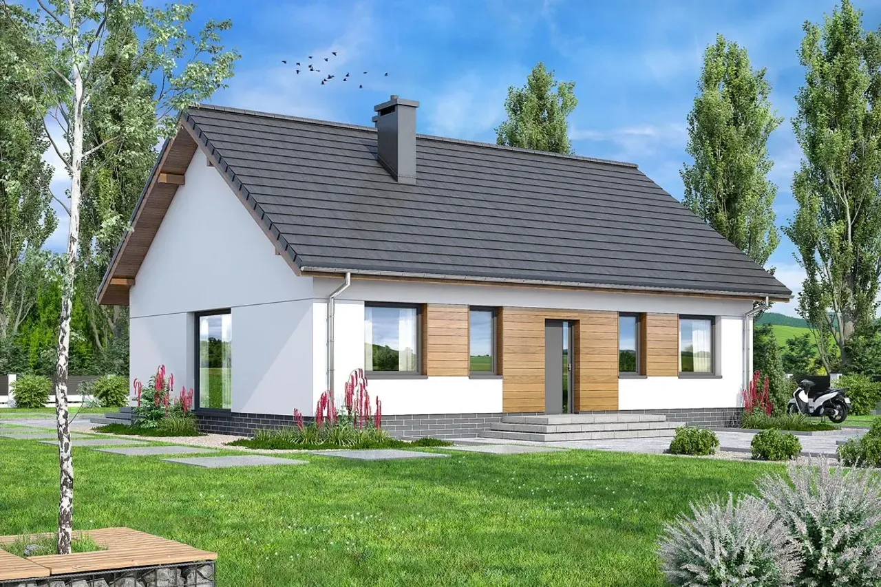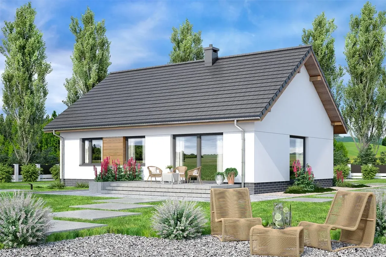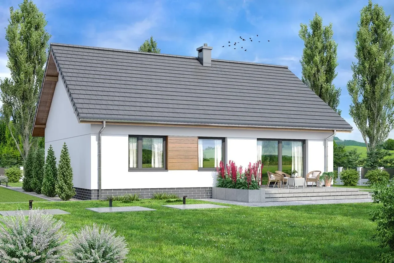 Kompaktowa bryła, czteropokojowy układ oraz obecność kominka w projekcie czynią z Daktyla 5 mini archand dom, który odpowiada na potrzeby współczesnej rodziny, ceniącej estetykę i praktyczność.