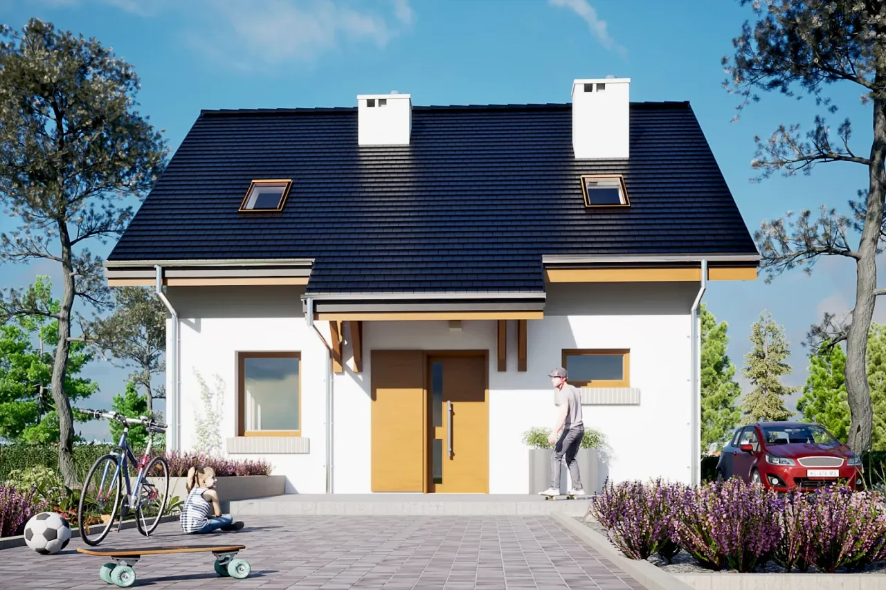 Kupując projekt w technologii murowanej powinieneś budować dom murowany. Zupełna zmiana technologii na szkieletową wymaga przeprojektowania całego budynku ( zmieniają się obciążenia, fundamenty, konstrukcja dachu). Wydamy zgodę na takie przeprojektowanie jednak wiążę się to z dużymi kosztami. Istnieją firmy wykonawcze, które podejmują się zmiany technologii budowy bezpłatnie przy skorzystaniu z ich usług wykonawczych. Zdarza się, że pracownia architektoniczna przygotowuje warianty konkretnego projektu przewidując także inne technologie. Prosimy o sprawdzenie czy istnieje poszukiwana wersja projektu, w zakładce - warianty projektu.