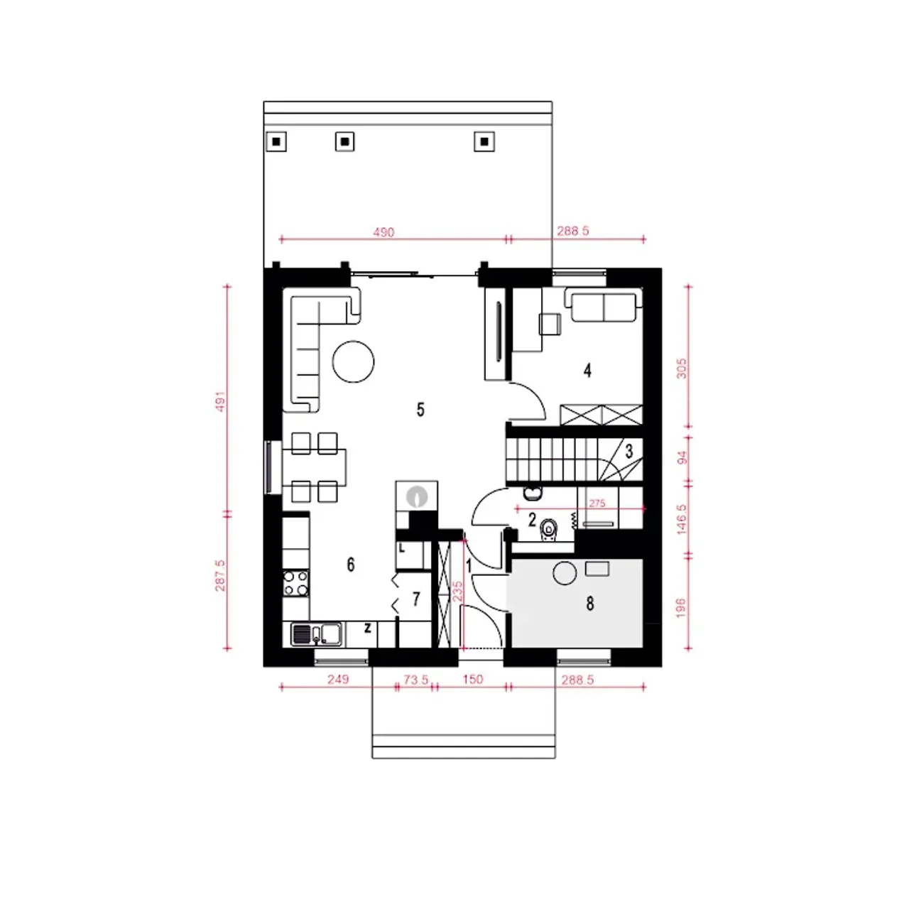 Wypełnij formularz i otrzymaj rysunki w pdf z dokładnymi wymiarami budynku i pomieszczeń (długość, szerokość, wysokość) dla projektu Daktyl bez garażu B