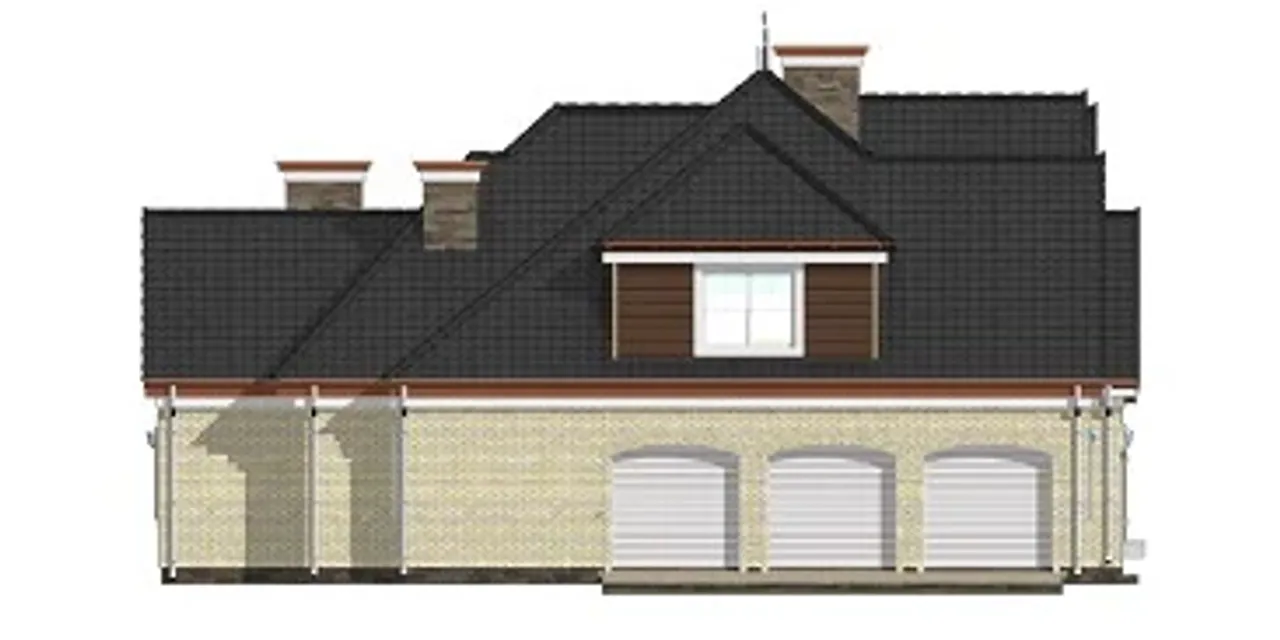 Projekt domu Dallas to duża piętrowa rezydencja. Jest to duży, wolnostojący dom z poddaszem użytkowym, niepodpiwniczony, z trzystanowiskowym garażem. Powierzchnia użytkowa 299.74 m2. Budynek może być posadowiony na działce od 550 m2. Projekt przewiduje ogrzewanie wodne zasilane piecem gazowym zainstalowanym w kotłowni obok garażu. Dodatkowo można uzyskać ogrzewanie na bazie kominka. Parter gotowego projektu domu Dallas to duży salon z otwartą z przeszklonymi drzwiami tarasowymi prowadzącymi na częściowo zadaszony taras. Salon przechodzi w jadalnię, do której przylega pokój kominkowy oraz duża otwarta kuchnia ze spiżarnią. Na środku kuchni tzw. wyspa. Przy salonie małe WC. Ponadto znajduje się tu odseparowana przestrzeń - duża sypialnia małżeńska z dwiema garderobami i łazienką. W holu schody na piętro. Piętro domu Dallas obejmuje sypialnię z osobną łaziennką oraz dwie sypialnie ze wspólną łazienkę. Nad garażem znajduje się pokój rekreacyjny do którego prowadzą osobne schody przy garażu. Ponadt na poddaszu znajduje się suszarnia i powierzchnia gospodarcza.Charakterystyka Energetyczna dla tego projektu jest zgodna z aktualnie obowiązującymi przepisami prawa budowlanego.