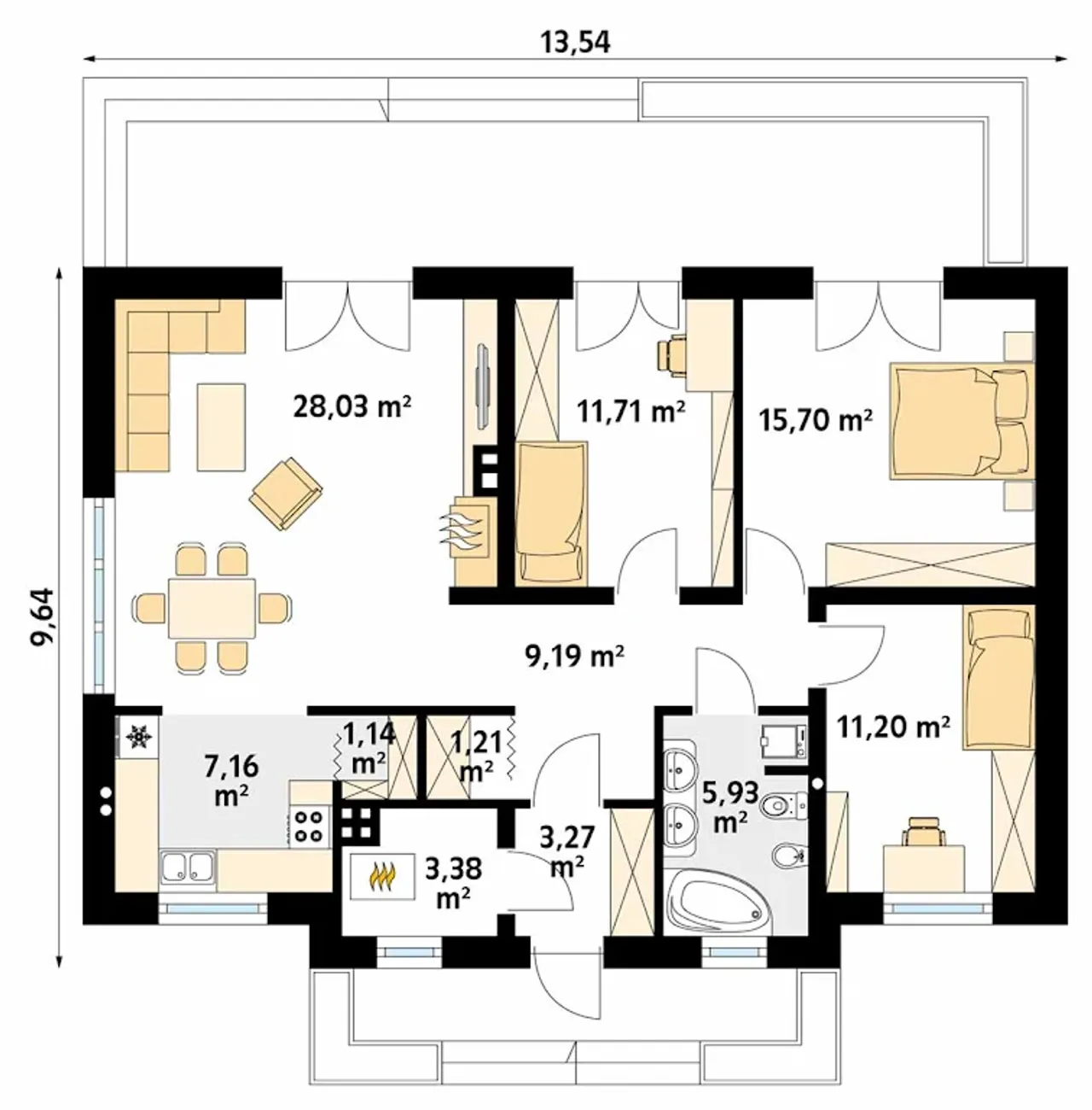 Wypełnij formularz i otrzymaj rysunki w pdf z dokładnymi wymiarami budynku i pomieszczeń (długość, szerokość, wysokość) dla projektu Decyma 10