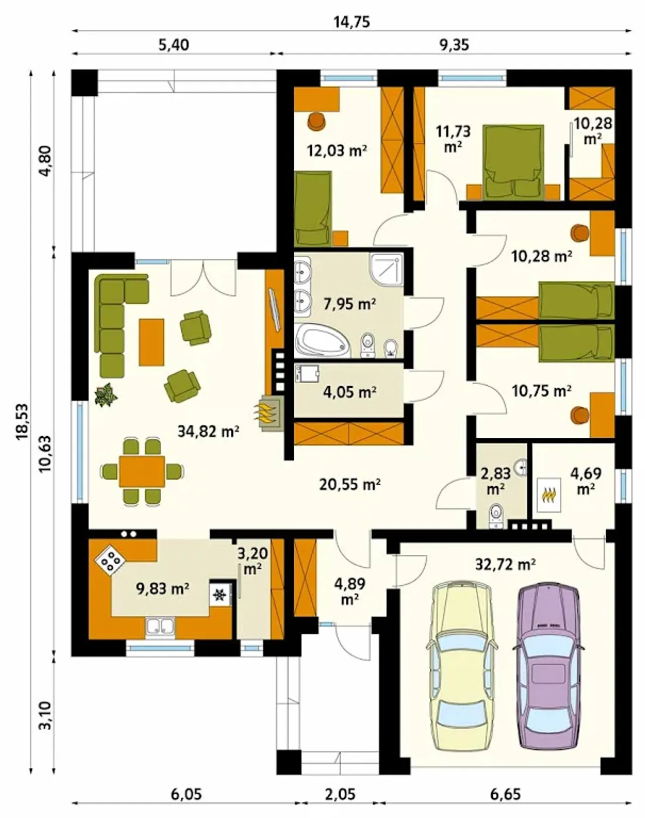 Wypełnij formularz i otrzymaj rysunki w pdf z dokładnymi wymiarami budynku i pomieszczeń (długość, szerokość, wysokość) dla projektu Decyma 5