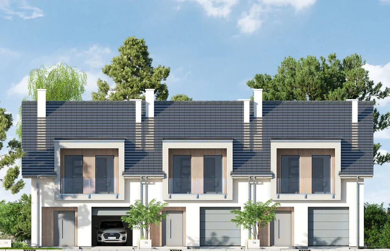 Wypełnij formularz i otrzymaj rysunki w pdf z dokładnymi wymiarami budynku i pomieszczeń (długość, szerokość, wysokość) dla projektu Diana 3 szeregówka