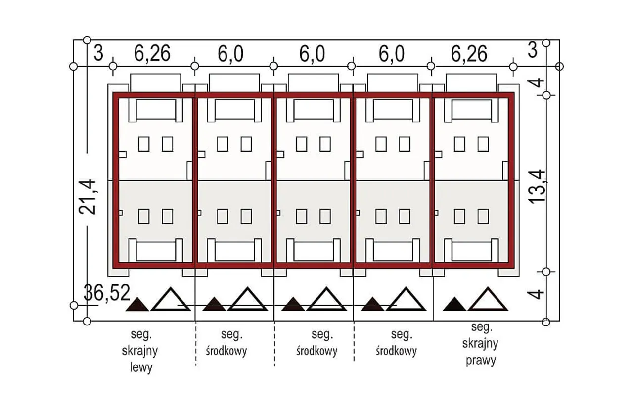 Wypełnij formularz i otrzymaj rysunki w pdf z dokładnymi wymiarami budynku i pomieszczeń (długość, szerokość, wysokość) dla projektu Diana A zestaw 5 segmentów