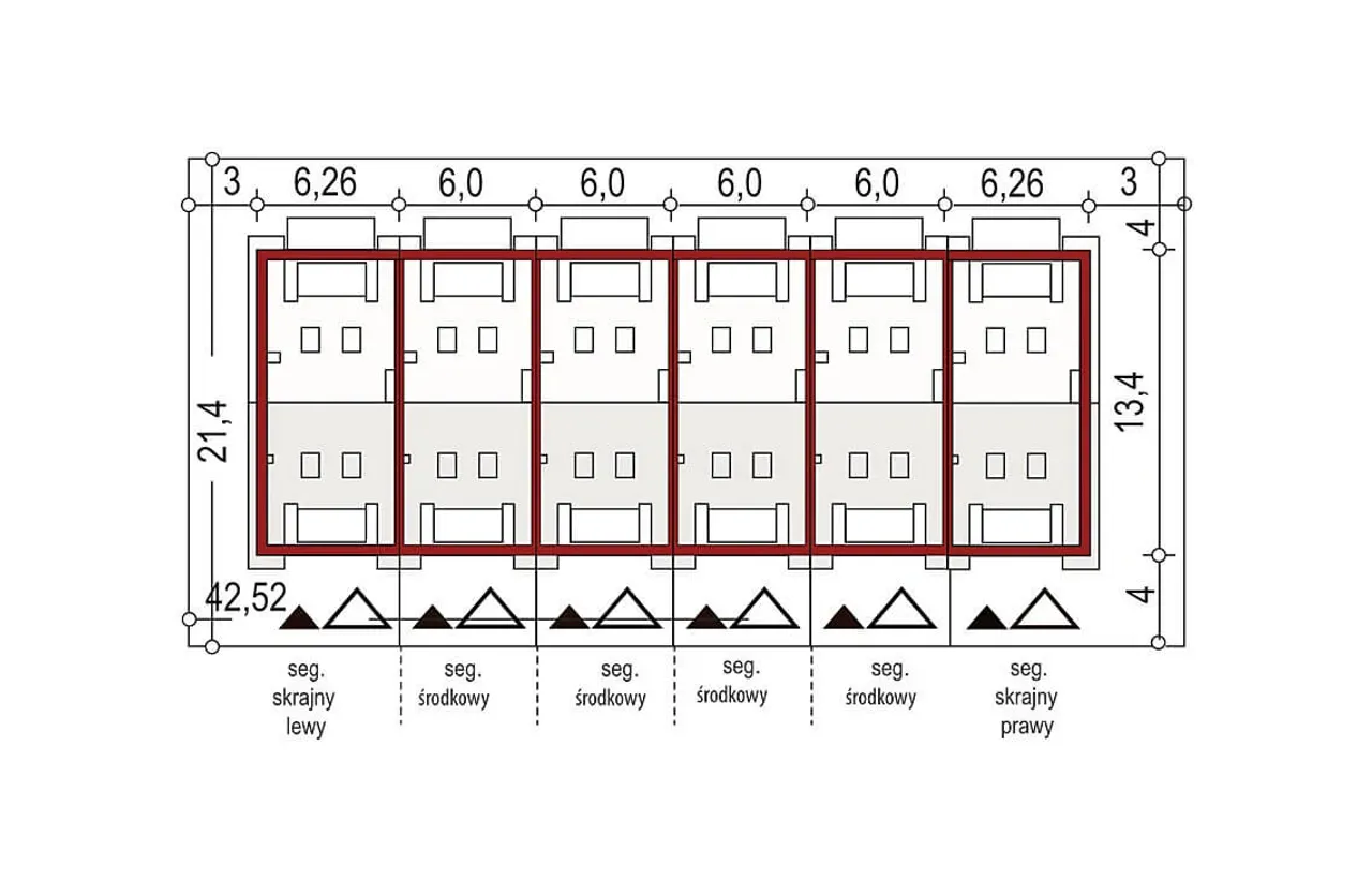 Wypełnij formularz i otrzymaj rysunki w pdf z dokładnymi wymiarami budynku i pomieszczeń (długość, szerokość, wysokość) dla projektu Diana A zestaw 6 segmentów