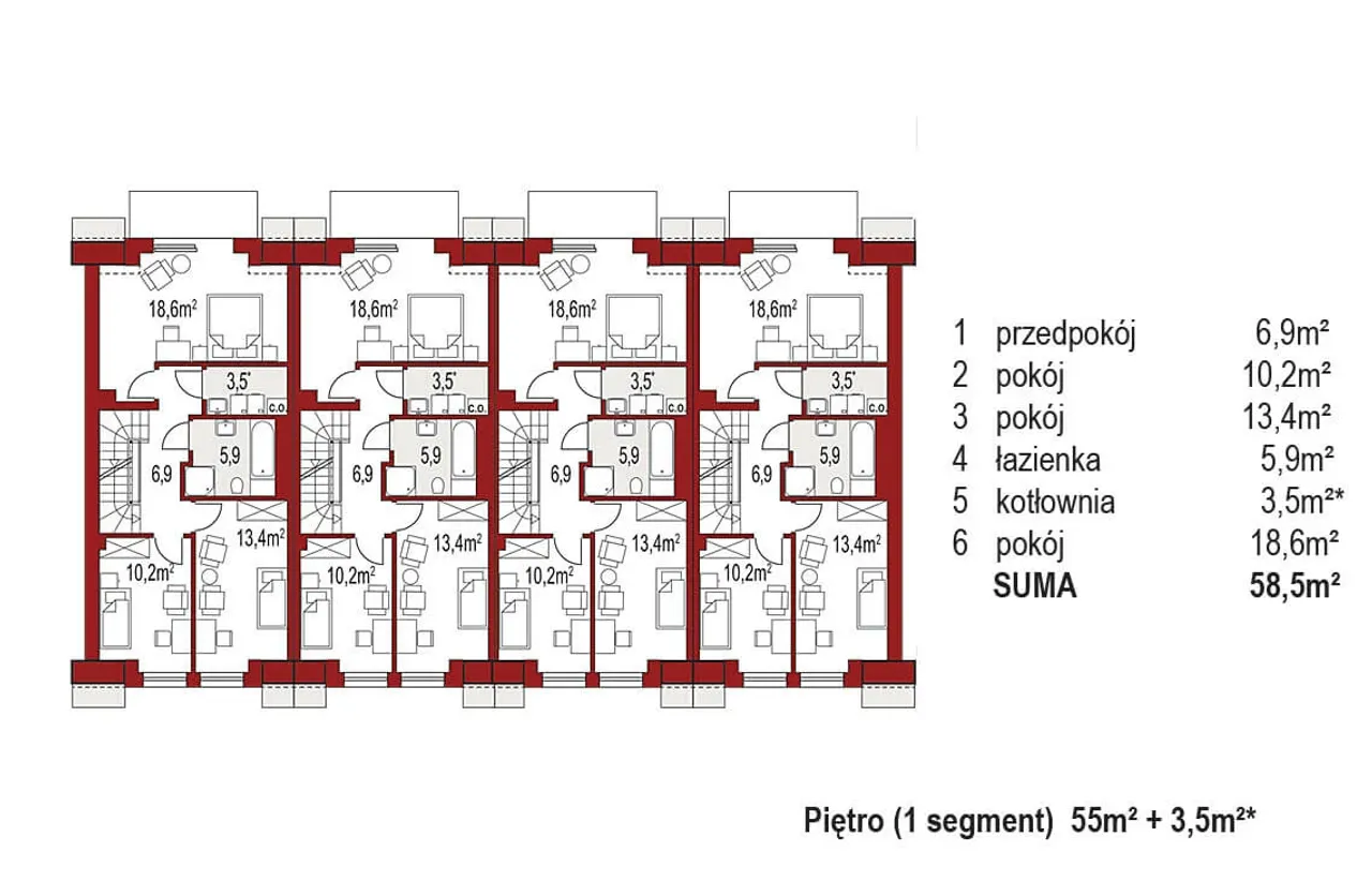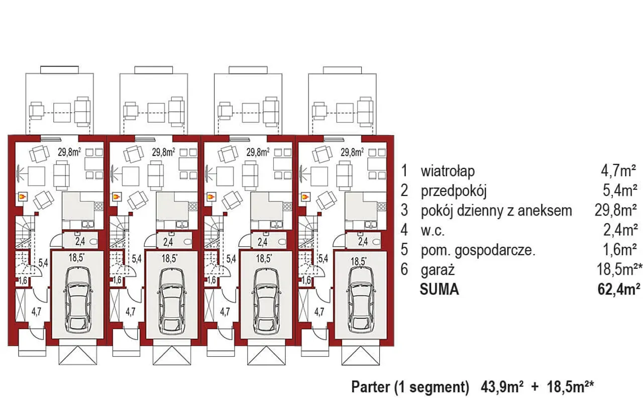 Wypełnij formularz i otrzymaj rysunki w pdf z dokładnymi wymiarami budynku i pomieszczeń (długość, szerokość, wysokość) dla projektu Diana B zestaw 4 segmenty