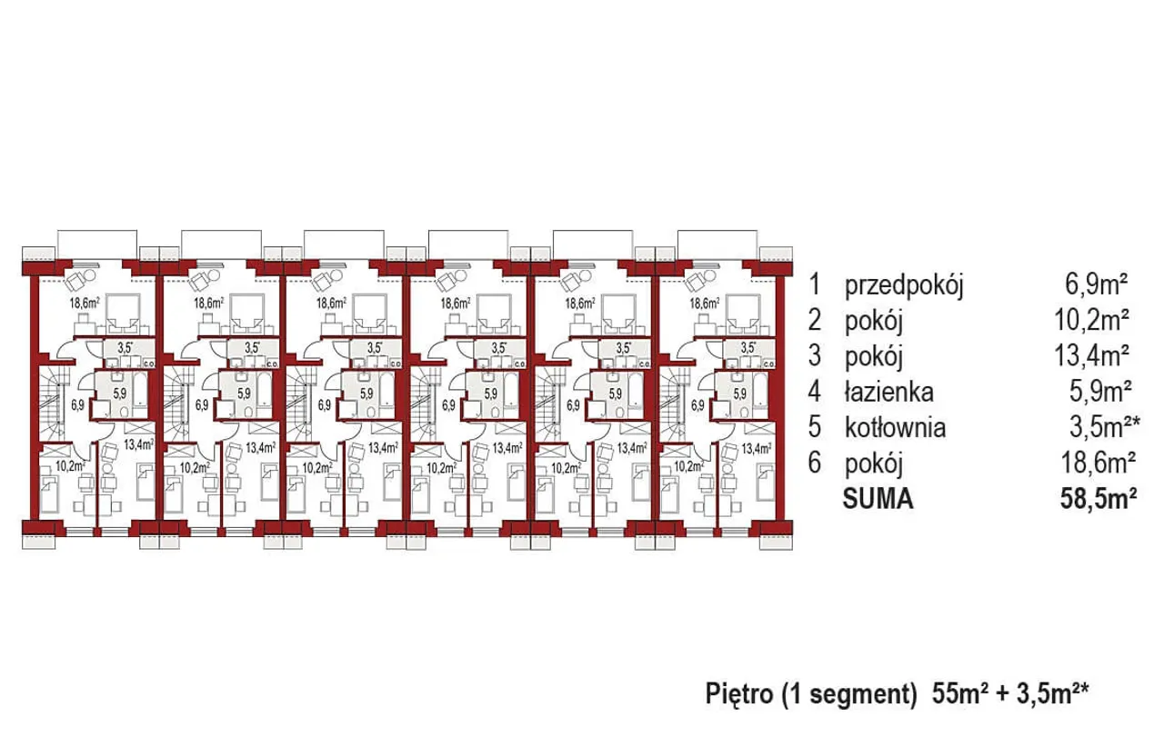 Wypełnij formularz i otrzymaj rysunki w pdf z dokładnymi wymiarami budynku i pomieszczeń (długość, szerokość, wysokość) dla projektu Diana B zestaw 6 segmentów