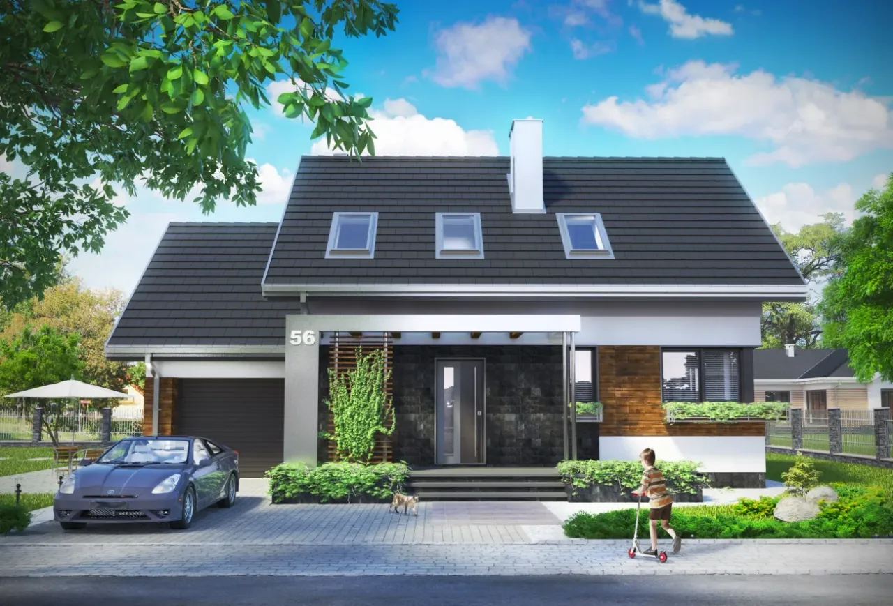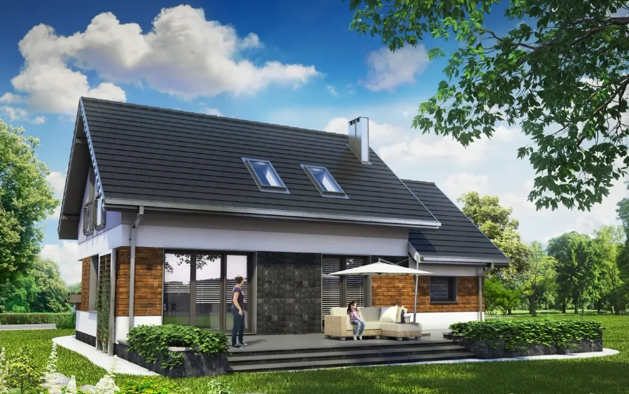 - elewacje - pokazują dokładny wygląd domu od frontu, z tyłu i z boków