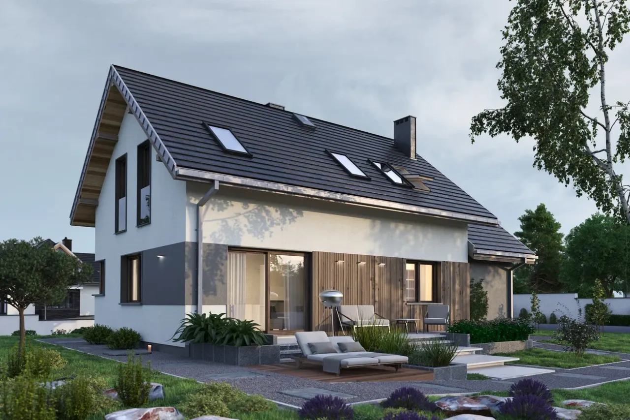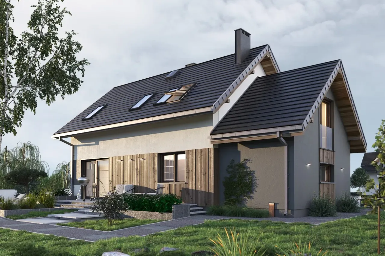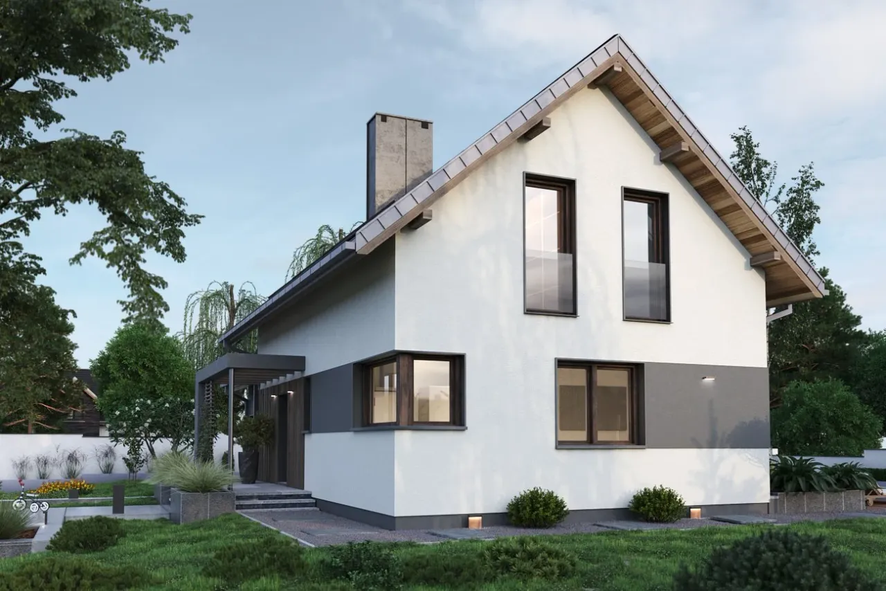 - elewacje - pokazują dokładny wygląd domu od frontu, z tyłu i z boków