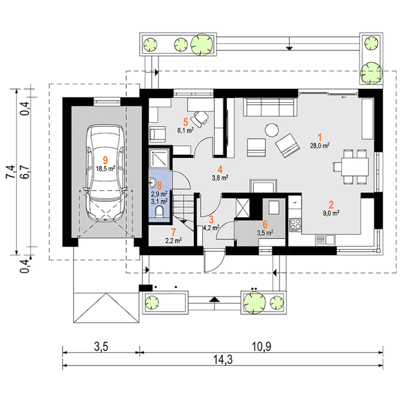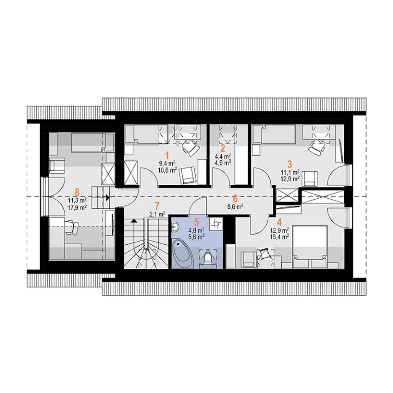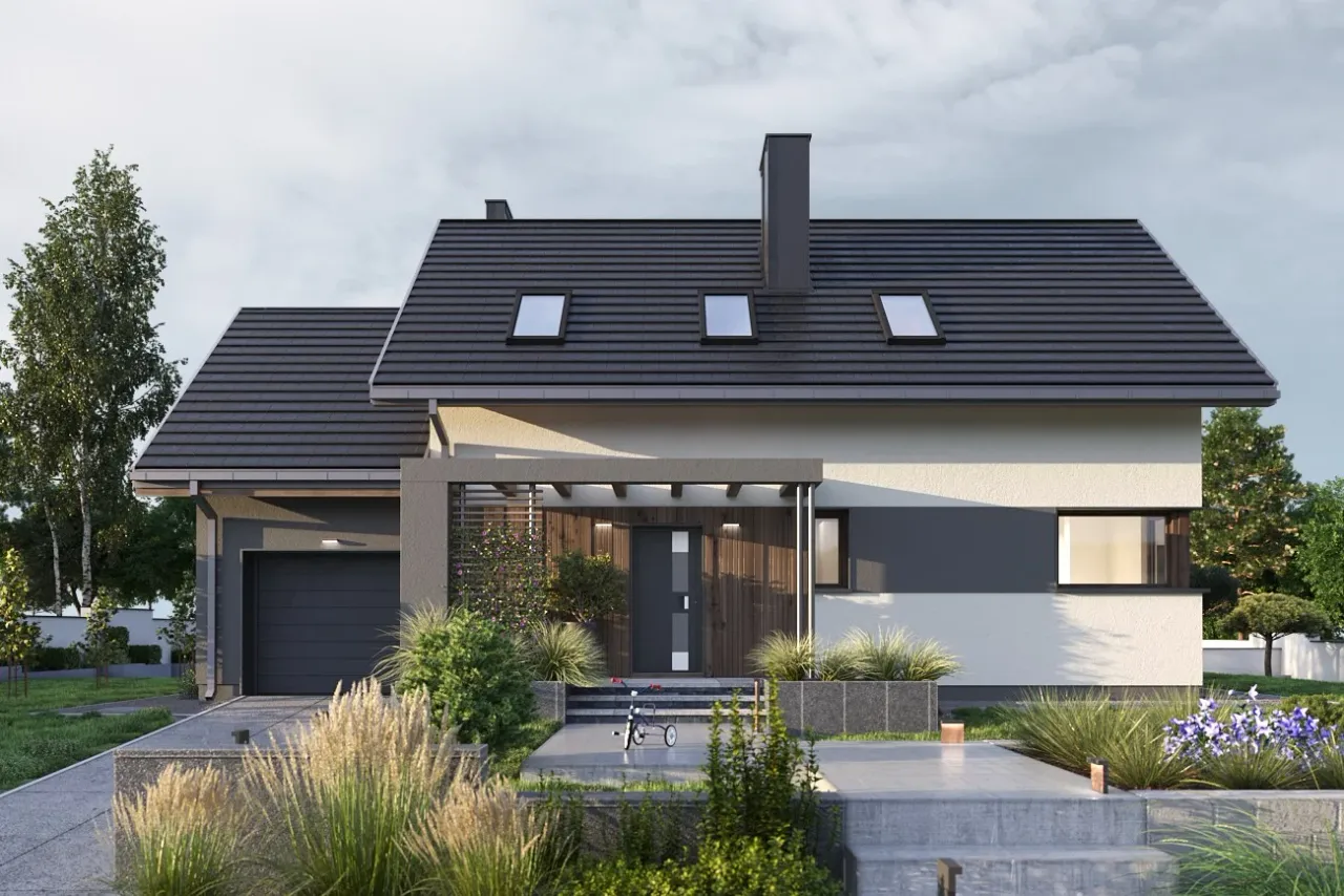 - elewacje - pokazują dokładny wygląd domu od frontu, z tyłu i z boków