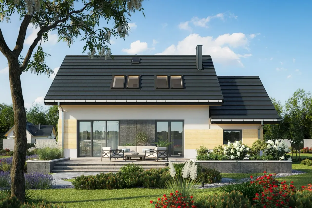 - elewacje - pokazują dokładny wygląd domu od frontu, z tyłu i z boków