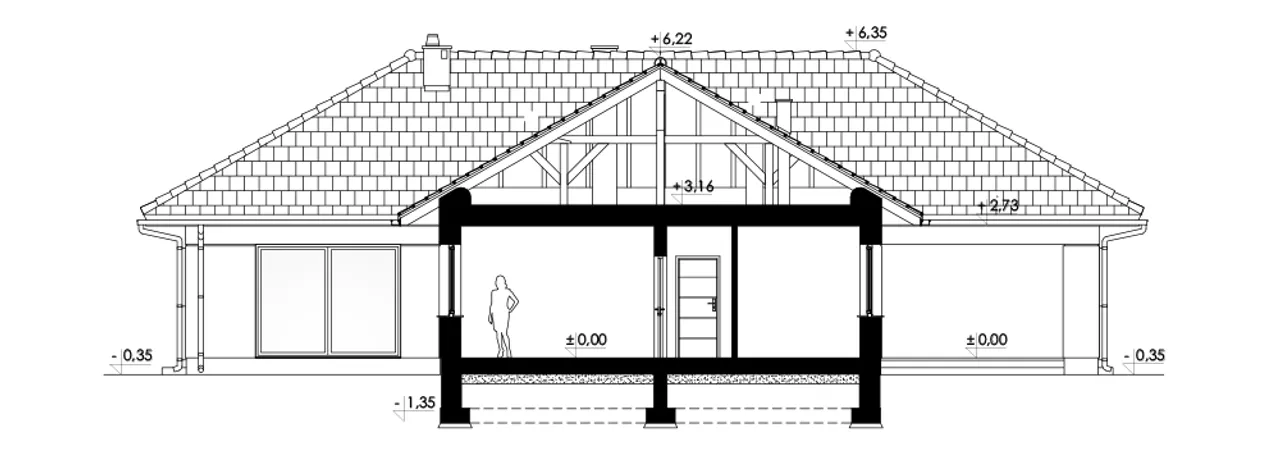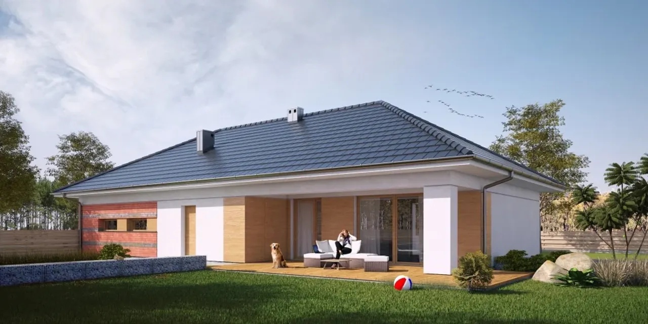 Dom Diversus I G2 to inwestycja w solidność na lata. Ściany zewnętrzne powstały z ceramicznych pustaków LEIER o grubości 25 cm, które zaizolowano 20-centymetrową warstwą styropianu Termo Organika oraz wykończono trwałym tynkiem. Strop żelbetowy stabilizuje konstrukcję i pomaga utrzymać ciepło. Wielospadowy dach o 30-stopniowym nachyleniu wykonany jest z drewnianej więźby i pokryty ceramiczną dachówką - sprawdzoną i estetyczną. Okna i drzwi PVC z roletami zewnętrznymi skutecznie chronią dom przed utratą ciepła i nadmiernym nagrzewaniem, jednocześnie dbając o prywatność domowników.