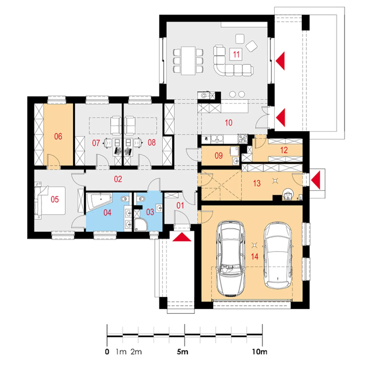 Odkryj funkcjonalność nowoczesnego stylu w projekcie domu Diversus I G2 - harmonijne połączenie komfortu, wygody i solidnych rozwiązań konstrukcyjnych. Ten parterowy dom jednorodzinny z garażem na dwa stanowiska powstał z myślą o potrzebach rodzin ceniących przestrzeń, bezpieczeństwo i funkcjonalność.