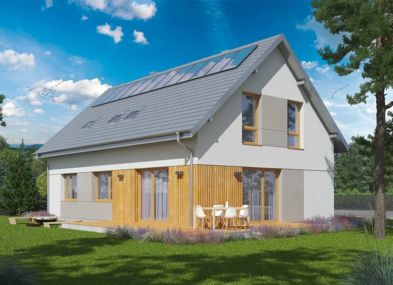 Kupując projekt w technologii murowanej powinieneś budować dom murowany. Zupełna zmiana technologii na szkieletową wymaga przeprojektowania całego budynku ( zmieniają się obciążenia, fundamenty, konstrukcja dachu). Wydamy zgodę na takie przeprojektowanie jednak wiążę się to z dużymi kosztami. Istnieją firmy wykonawcze, które podejmują się zmiany technologii budowy bezpłatnie przy skorzystaniu z ich usług wykonawczych. Zdarza się, że pracownia architektoniczna przygotowuje warianty konkretnego projektu przewidując także inne technologie. Prosimy o sprawdzenie czy istnieje poszukiwana wersja projektu, w zakładce - warianty projektu.