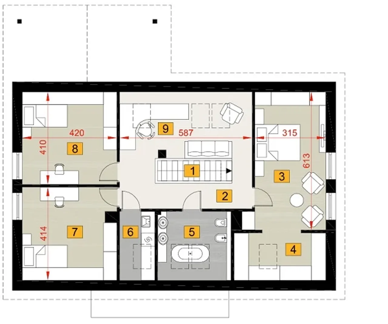Wypełnij formularz i otrzymaj rysunki w pdf z dokładnymi wymiarami budynku i pomieszczeń (długość, szerokość, wysokość) dla projektu Dla rodziny 2G1 - A115G1+AR2
