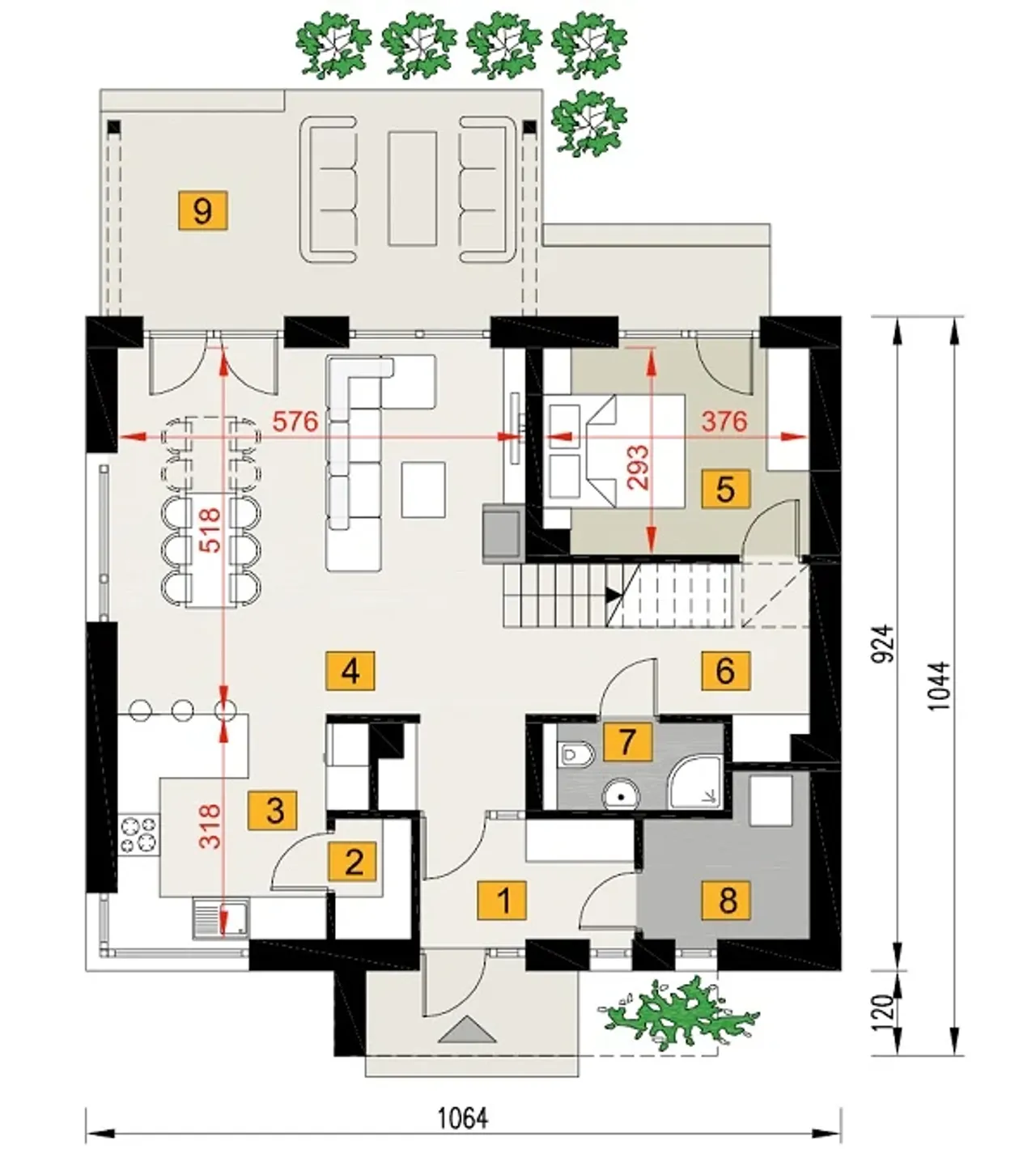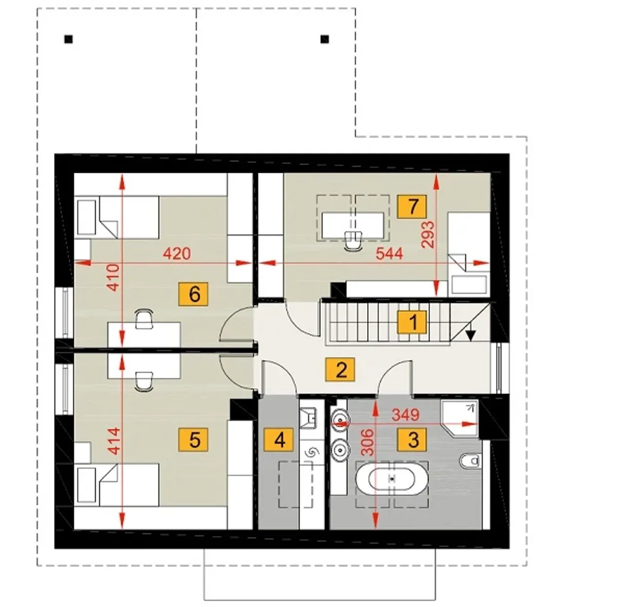 Wypełnij formularz i otrzymaj rysunki w pdf z dokładnymi wymiarami budynku i pomieszczeń (długość, szerokość, wysokość) dla projektu Dla rodziny - A115