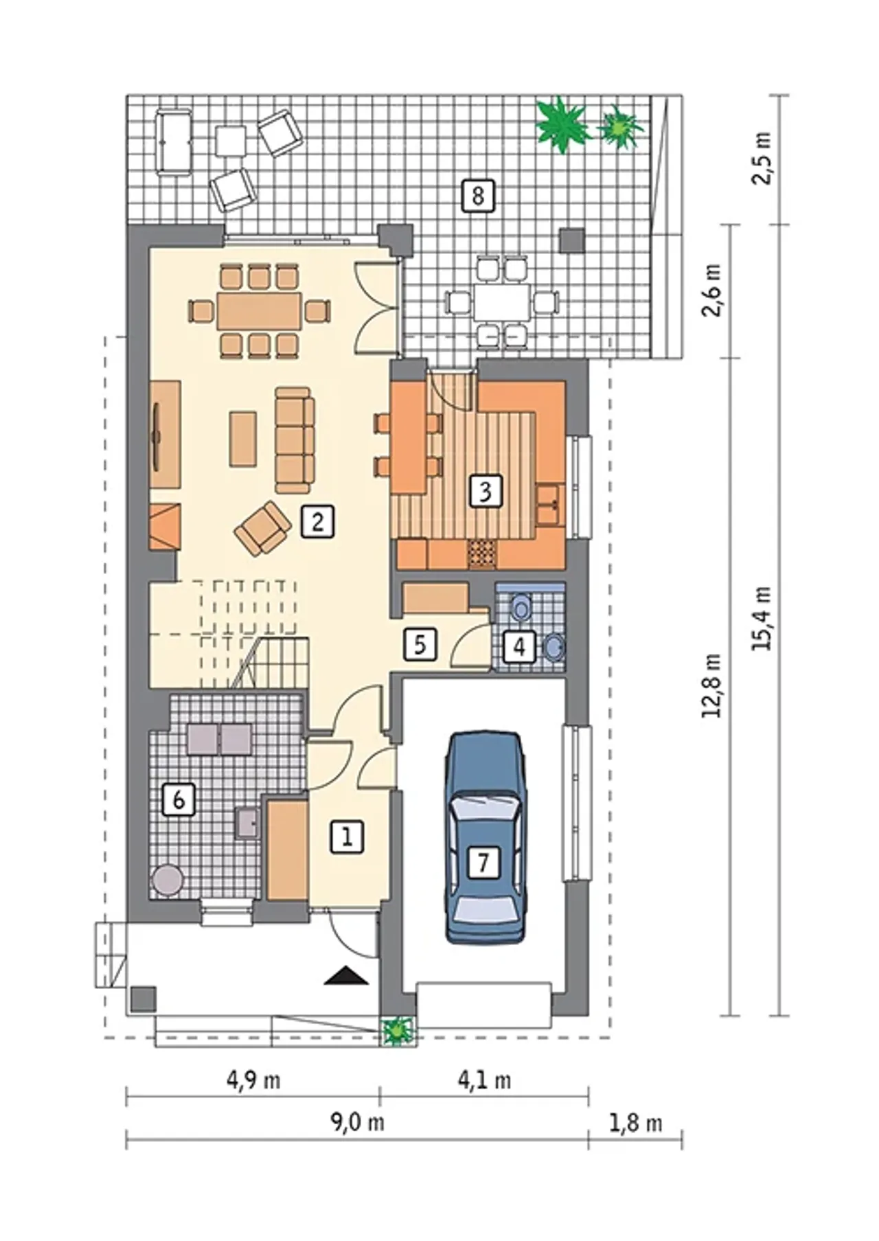 2. Pokój dzienny | 36,40 (40,00) m² |