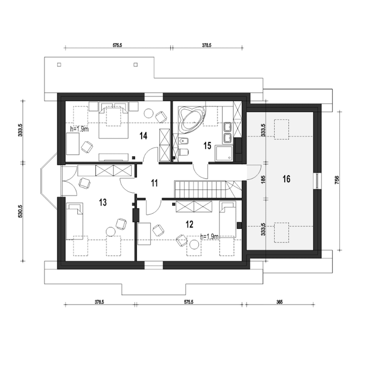 Powierzchnia dachu 278.5 m² |