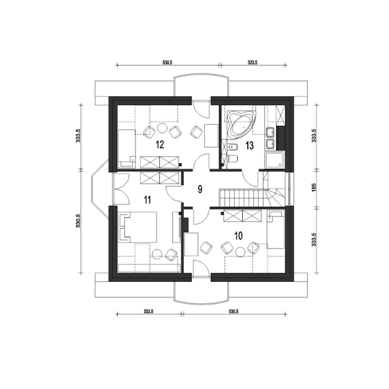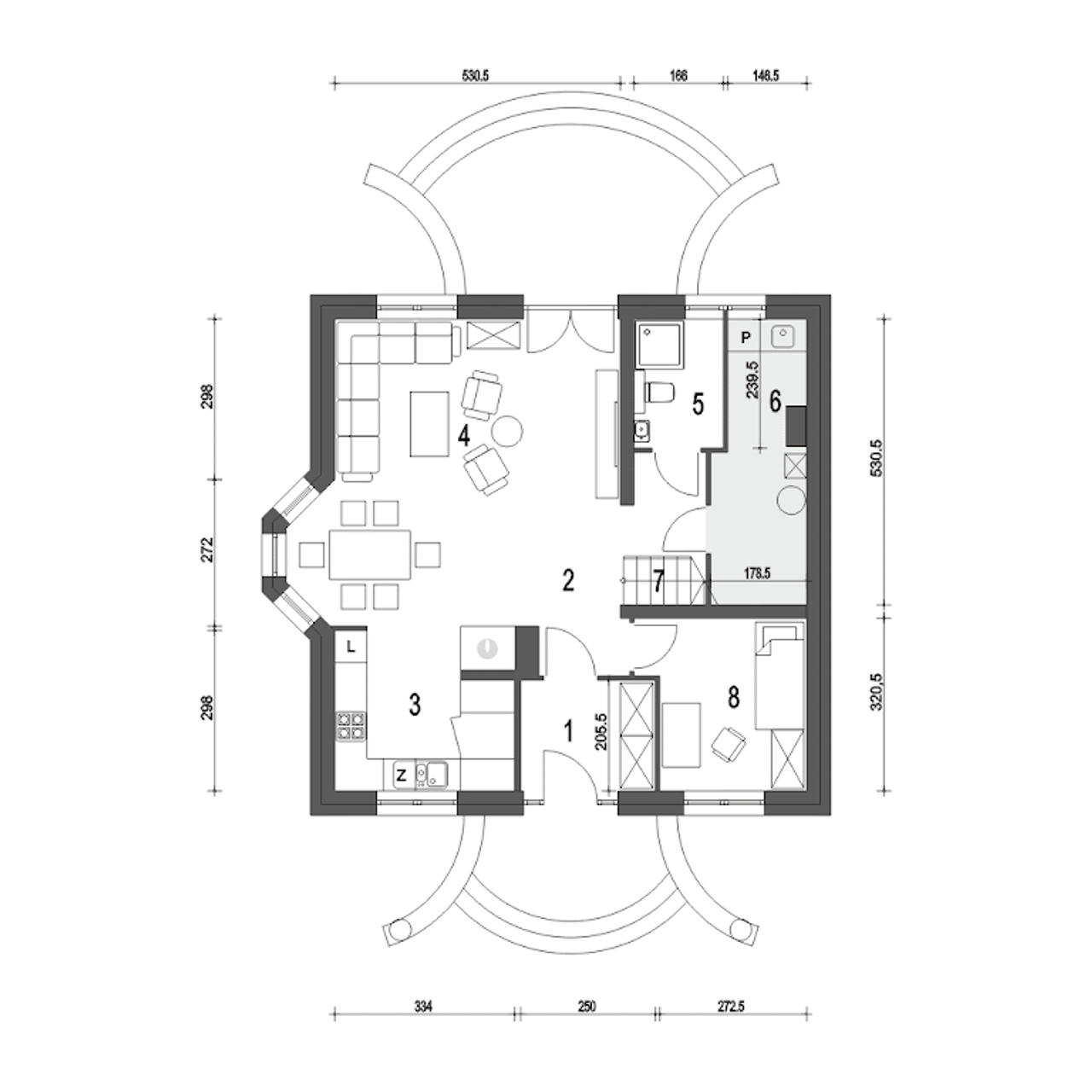 Wypełnij formularz i otrzymaj rysunki w pdf z dokładnymi wymiarami budynku i pomieszczeń (długość, szerokość, wysokość) dla projektu Dom Dla Ciebie 3 bez garażu B1