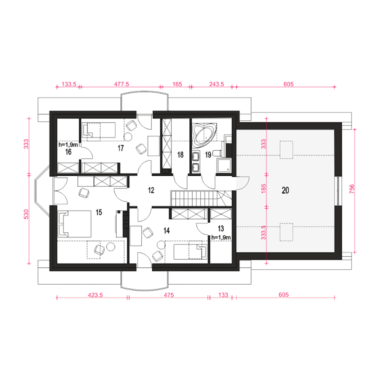 Kupując projekt w technologii murowanej powinieneś budować dom murowany. Zupełna zmiana technologii na szkieletową wymaga przeprojektowania całego budynku ( zmieniają się obciążenia, fundamenty, konstrukcja dachu). Wydamy zgodę na takie przeprojektowanie jednak wiążę się to z dużymi kosztami. Istnieją firmy wykonawcze, które podejmują się zmiany technologii budowy bezpłatnie przy skorzystaniu z ich usług wykonawczych. Zdarza się, że pracownia architektoniczna przygotowuje warianty konkretnego projektu przewidując także inne technologie. Prosimy o sprawdzenie czy istnieje poszukiwana wersja projektu, w zakładce - warianty projektu.