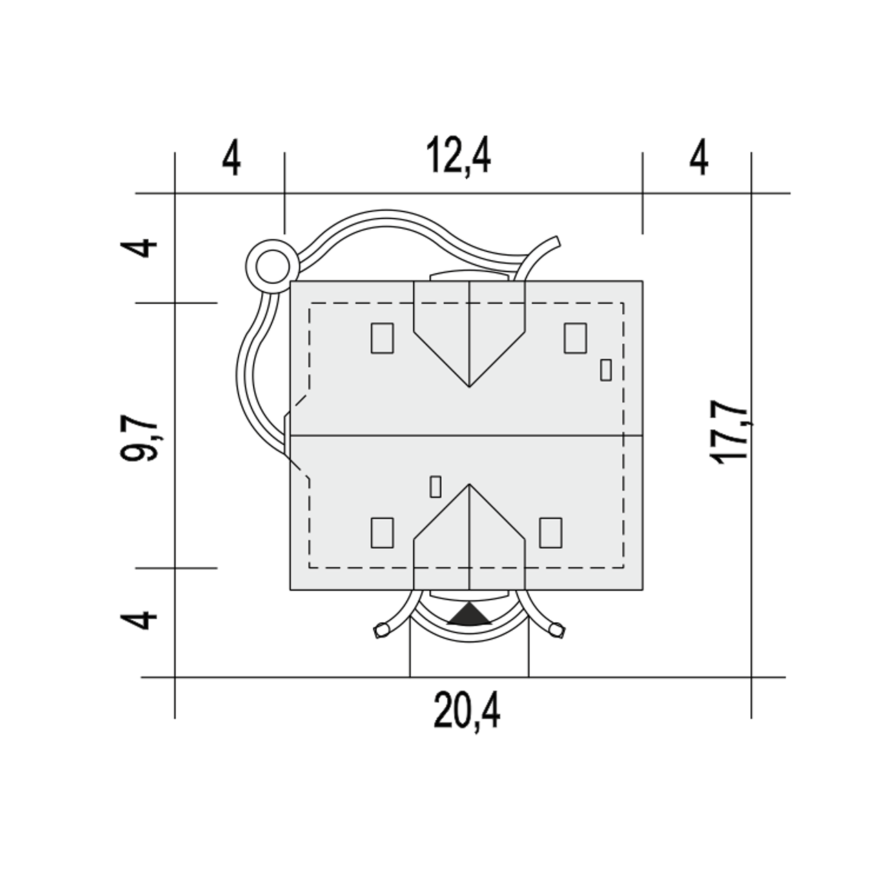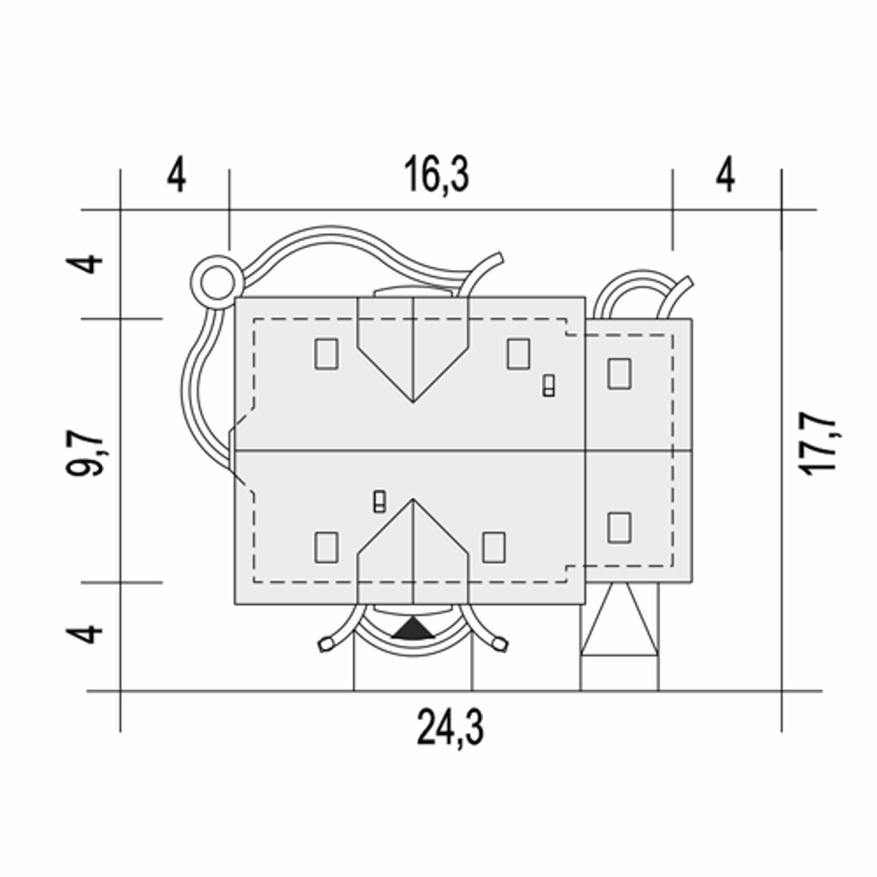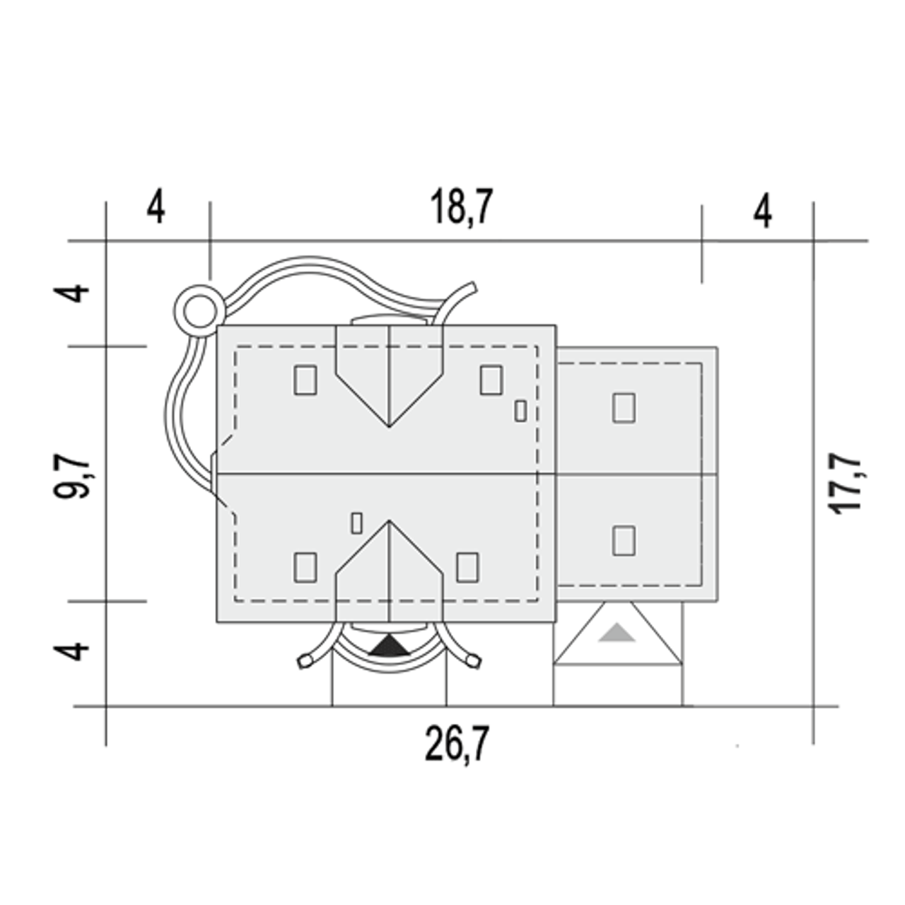 Wypełnij formularz i otrzymaj rysunki w pdf z dokładnymi wymiarami budynku i pomieszczeń (długość, szerokość, wysokość) dla projektu Dom Dla Ciebie 7 z garażem 2-st. A1