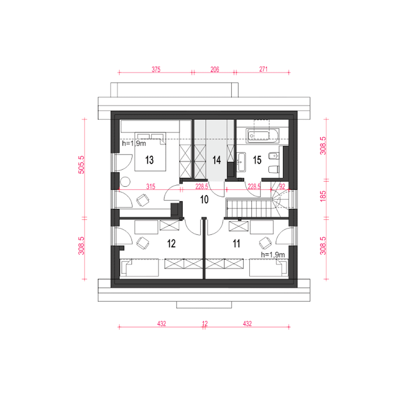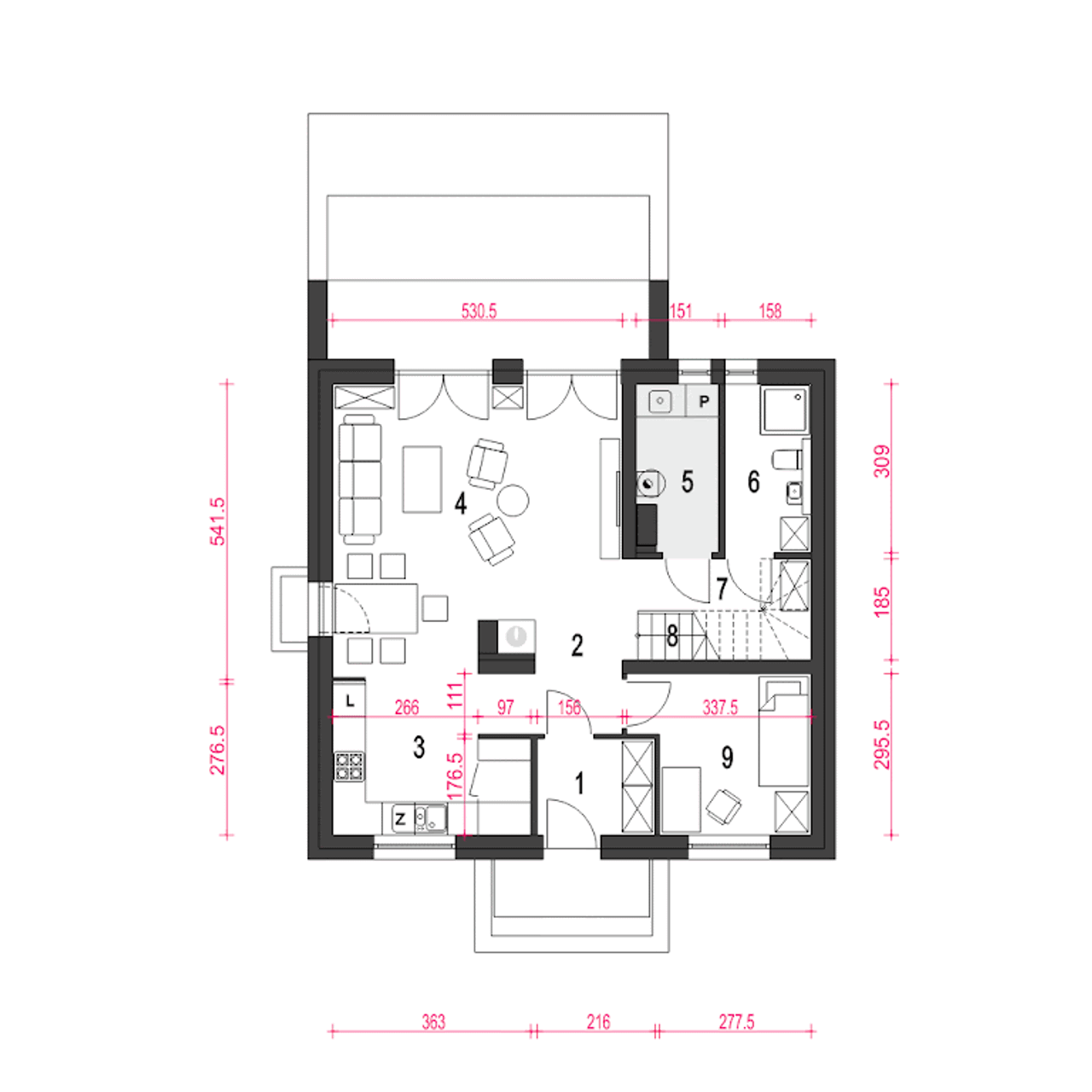 Wypełnij formularz i otrzymaj rysunki w pdf z dokładnymi wymiarami budynku i pomieszczeń (długość, szerokość, wysokość) dla projektu Dom Dla Ciebie 8 bez garażu B