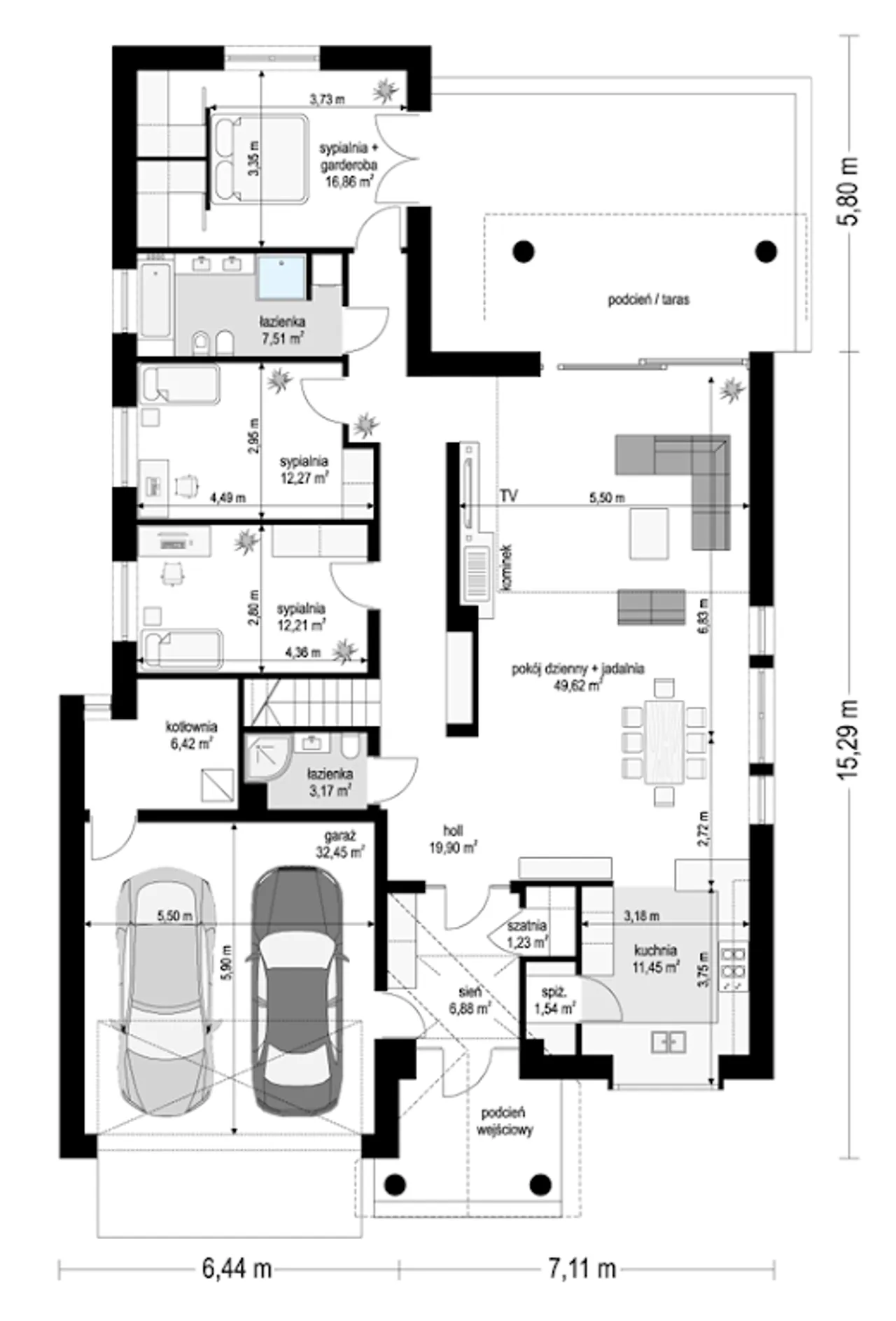 4. Pokój dzienny + jadalnia | 49,62 m² |