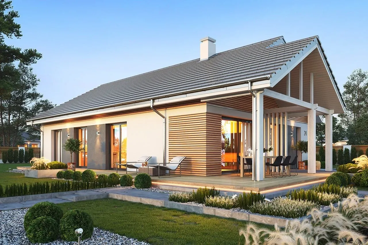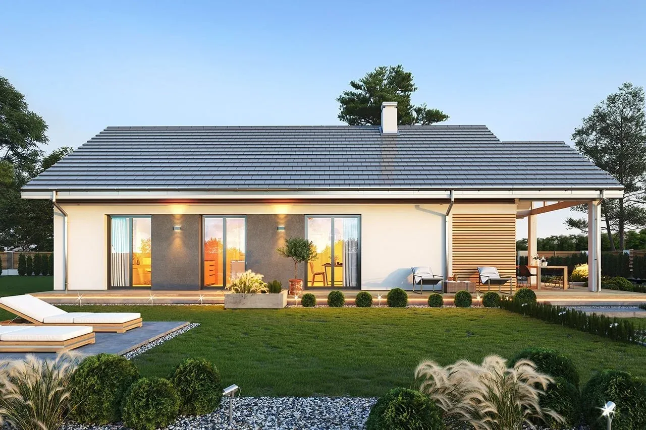 Zainwestuj w projekt domu jednorodzinnego z kominkiem i tarasem - wybierz funkcjonalność, oszczędność i nowoczesny styl, który podkreśli charakter Twojej rodziny. Zamów projekt i zadbaj o każdy detal swojego przyszłego domu!