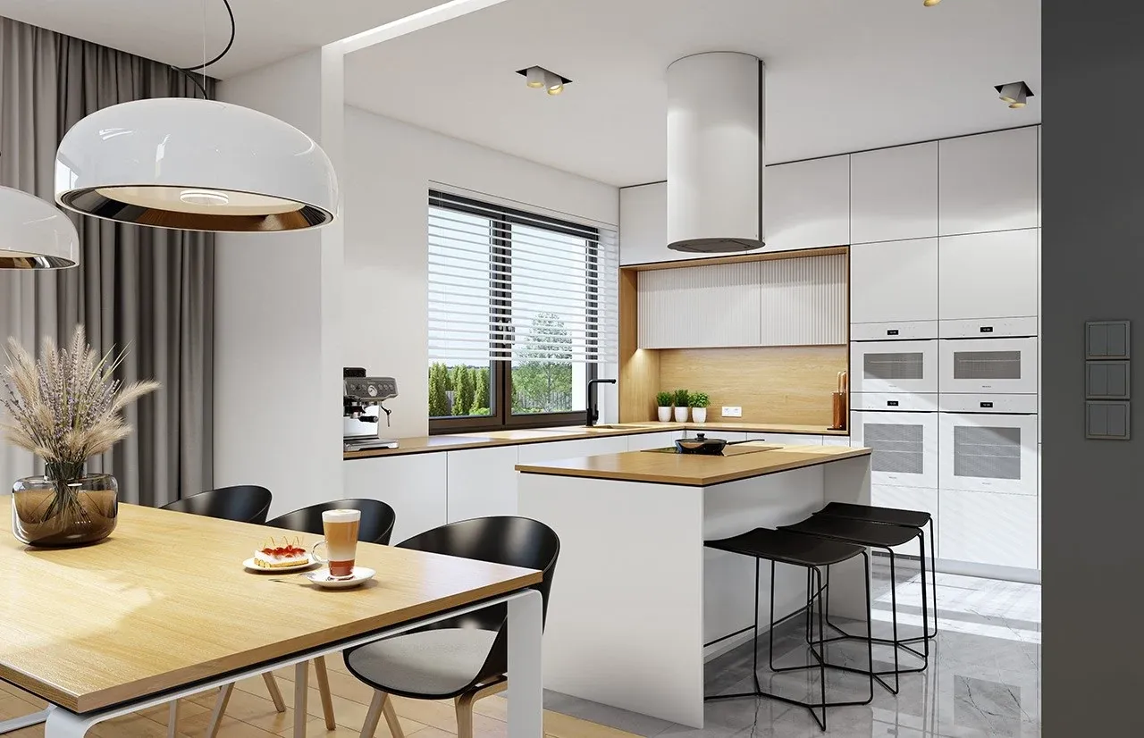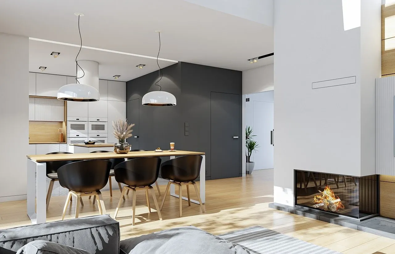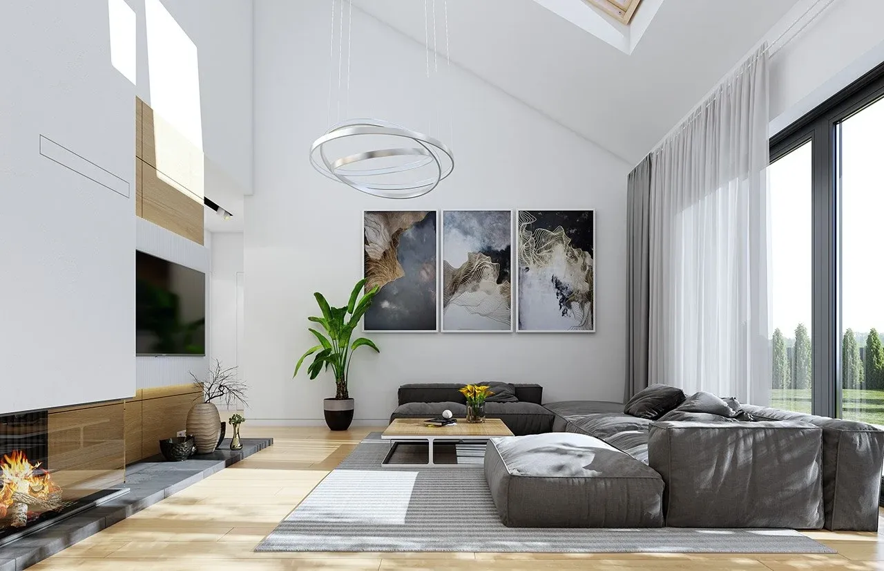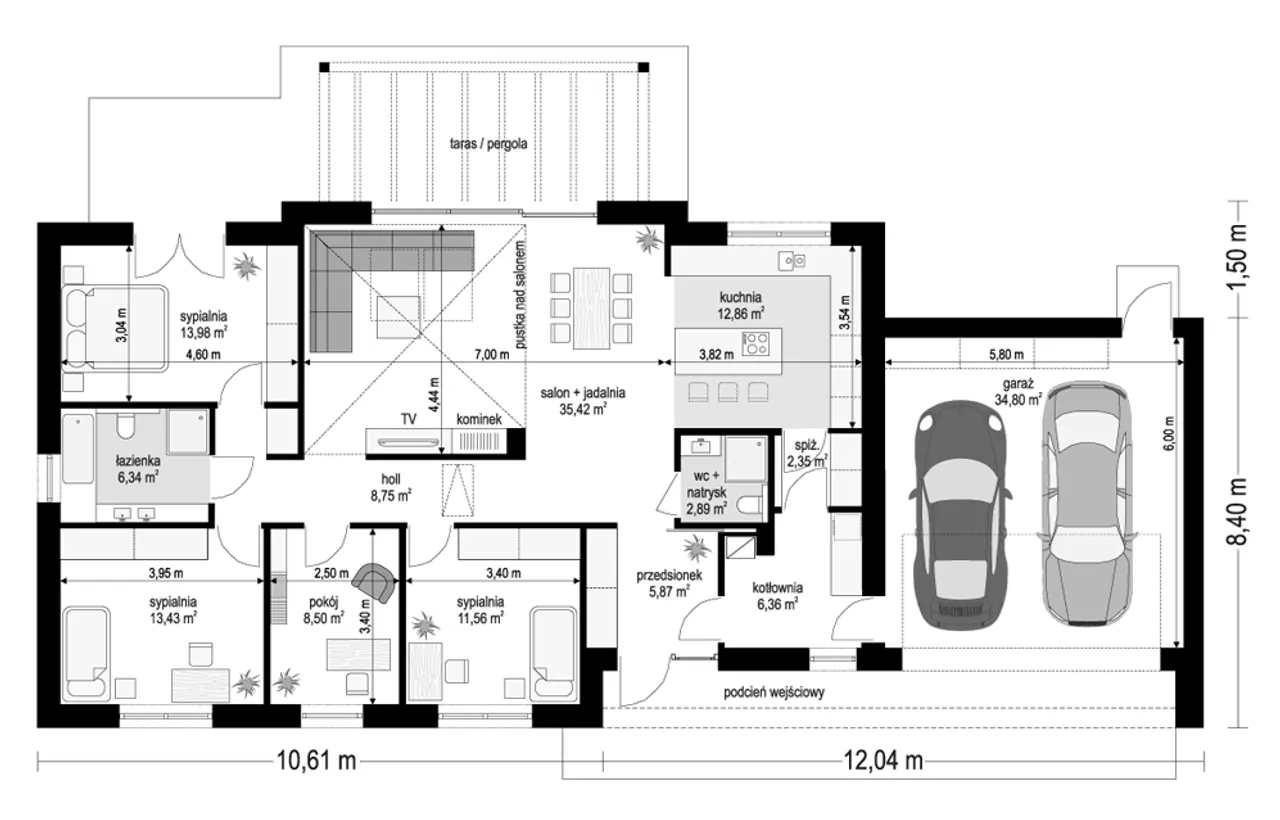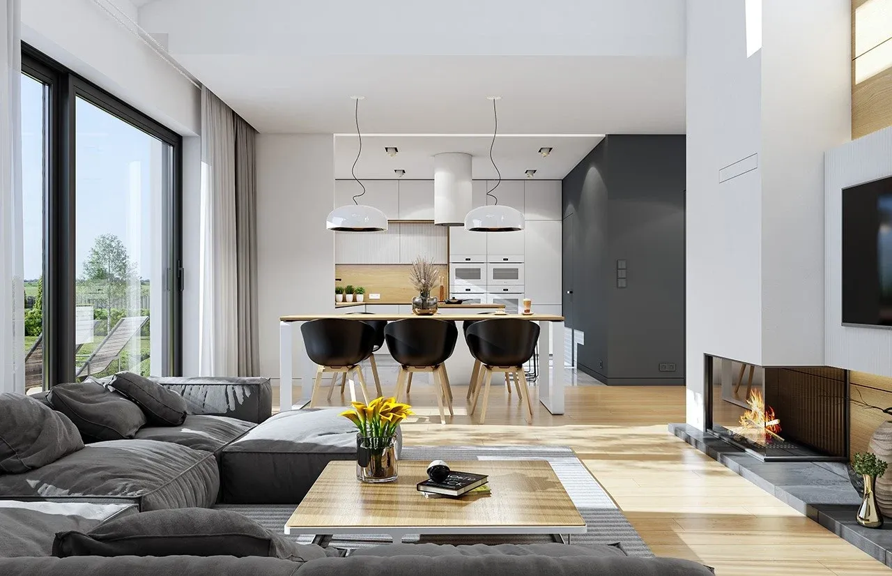 Dom wybudowany na podstawie tego projektu łączy w sobie wyrafinowaną prostotę formy, codzienną wygodę oraz wysoką jakość zastosowanych rozwiązań. Praktyczny garaż z przodu budynku, duża kotłownia i przestronny taras przekładają się na jeszcze większą użyteczność. Dodatkowy atut stanowi kominek, zapewniający wyjątkowy klimat każdego wieczoru. Podejmij decyzję już dziś - zamów projekt i ciesz się funkcjonalnym, solidnym domem na lata!
