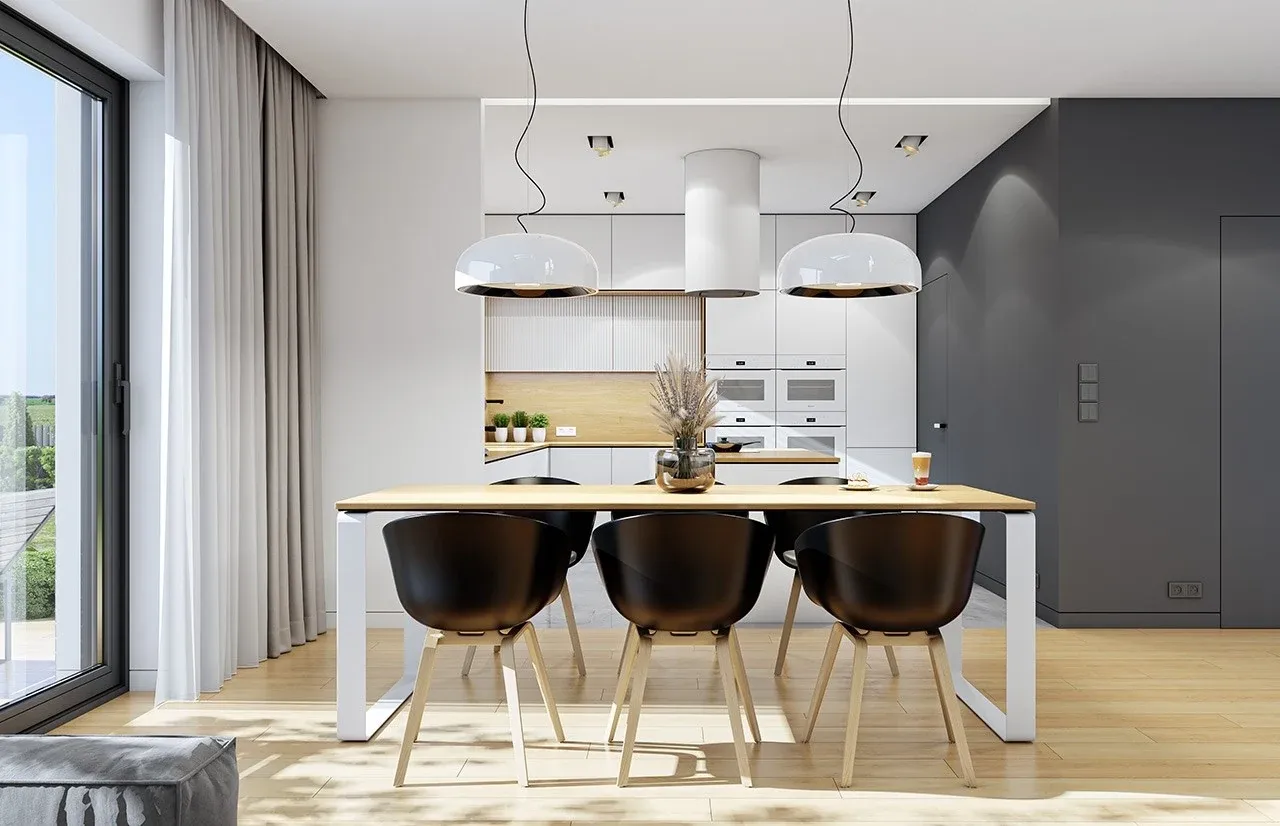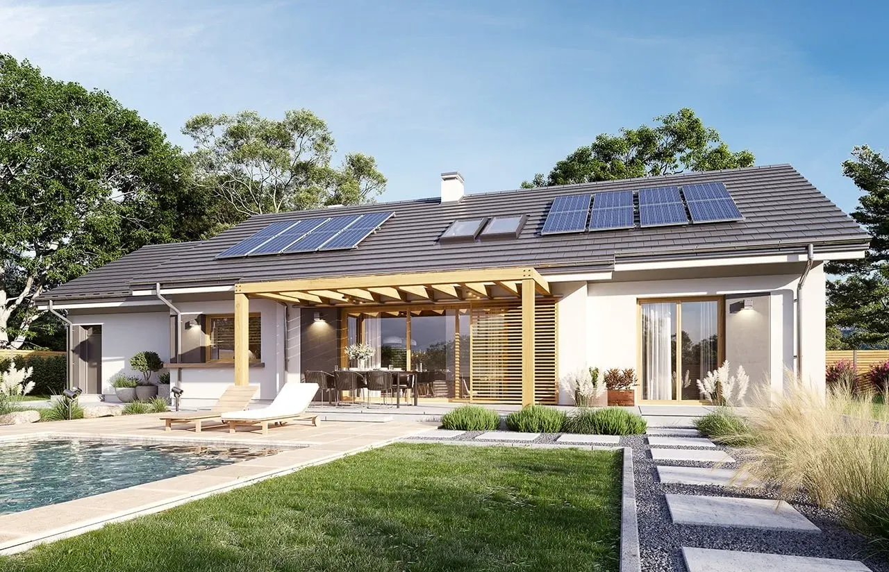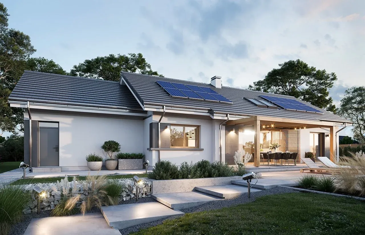 Szukasz praktycznego i efektownego projektu domu, który będzie idealnie wpisywać się w nowoczesne trendy, a przy tym zapewni wygodę całej rodzinie? Ten parterowy dom z dwuspadowym dachem, dwustanowiskowym garażem i przestronnym tarasem został stworzony z myślą o wygodnym, codziennym życiu nawet najbardziej wymagających inwestorów.