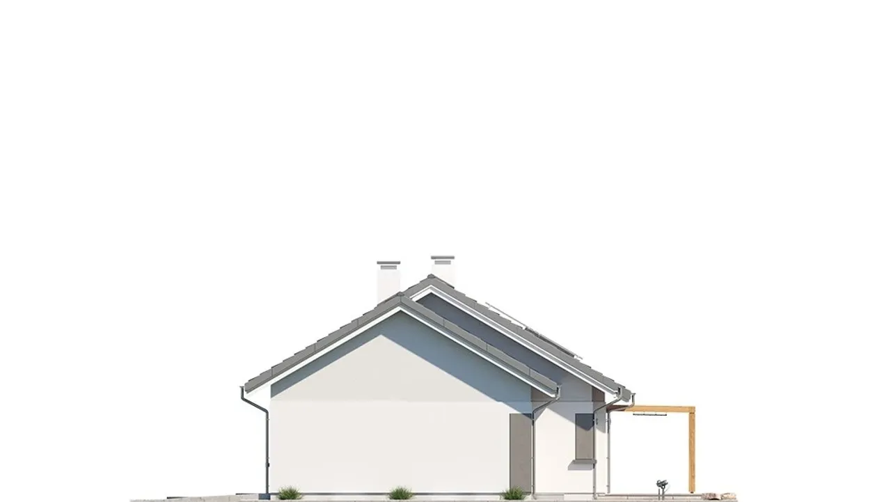 Bryła budynku jest prosta, co przekłada się na niskie koszty budowy i łatwą aranżację wnętrza. Dom posiada dwa wejścia oraz pięć ustawnych pokoi, a dzięki nowoczesnym materiałom jest energooszczędny i trwały, dając spokój na lata.