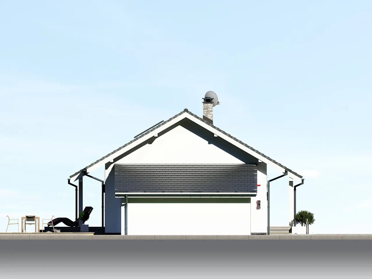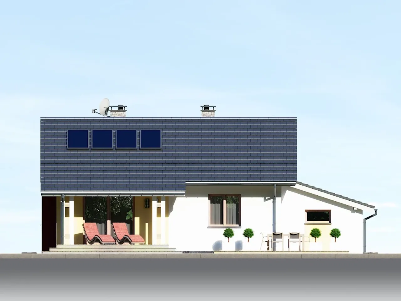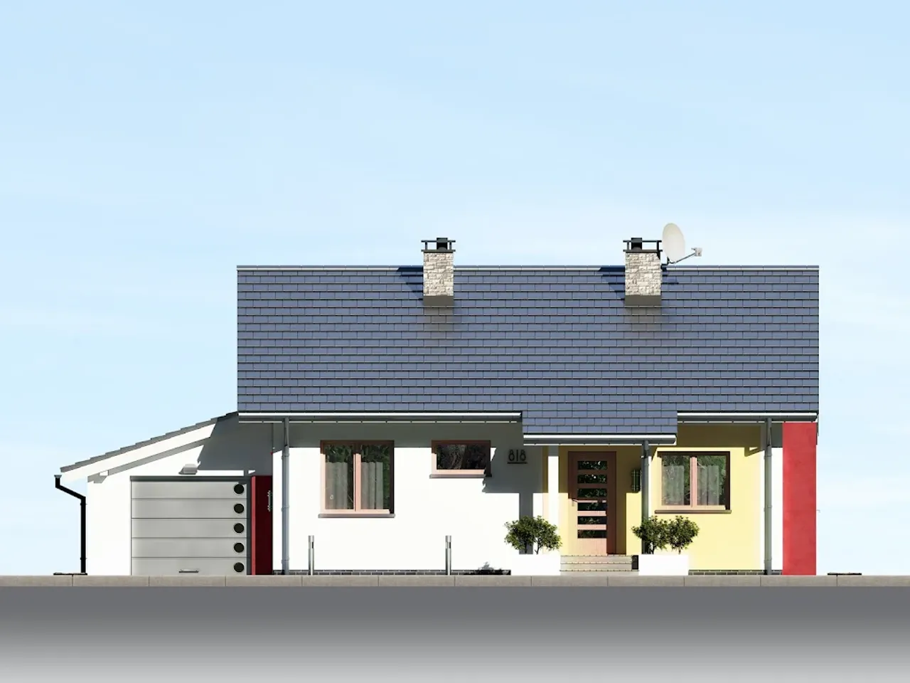 Wizja mieszkania w Domu Parterowym 13 jest niczym spełnienie marzeń o idealnej oazie dla rodziny, która ceni zarówno elegancję, jak i funkcjonalność. Architektura tego domu idealnie łączy nowoczesny design z klasycznymi rozwiązaniami, co gwarantuje ponadczasowy charakter. Zachwyca przemyślane rozmieszczenie pomieszczeń, które zapewnia prywatność, a jednocześnie sprzyja rodzinnej integracji. Przestronne i dobrze doświetlone wnętrza stanowią doskonałe tło dla indywidualnych aranżacji. Ogromny atut to również przemyślana strefa wejściowa, która buduje prestiżowy charakter całości. Projekt Domu Parterowego 13 to z pewnością wybór, który zadowoli najbardziej wymagających poszukiwaczy idealnego domu rodzinnego.