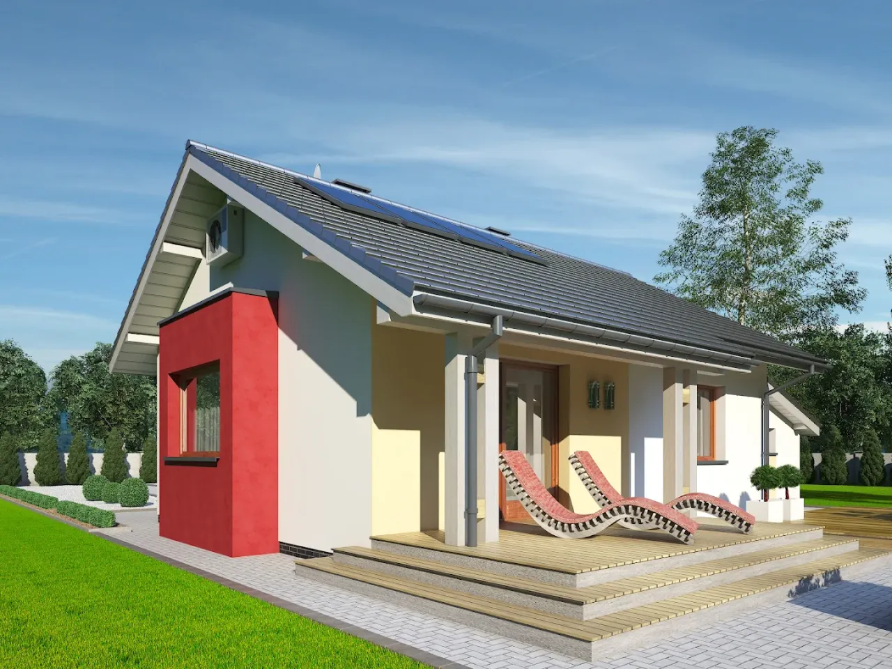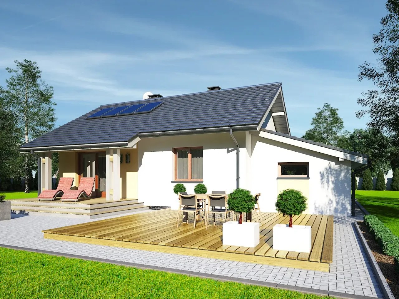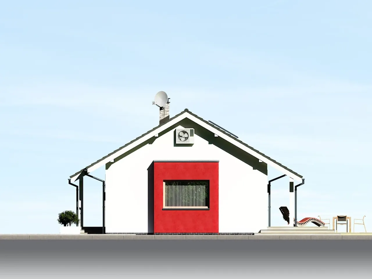 Wizja mieszkania w Domu Parterowym 13 jest niczym spełnienie marzeń o idealnej oazie dla rodziny, która ceni zarówno elegancję, jak i funkcjonalność. Architektura tego domu idealnie łączy nowoczesny design z klasycznymi rozwiązaniami, co gwarantuje ponadczasowy charakter. Zachwyca przemyślane rozmieszczenie pomieszczeń, które zapewnia prywatność, a jednocześnie sprzyja rodzinnej integracji. Przestronne i dobrze doświetlone wnętrza stanowią doskonałe tło dla indywidualnych aranżacji. Ogromny atut to również przemyślana strefa wejściowa, która buduje prestiżowy charakter całości. Projekt Domu Parterowego 13 to z pewnością wybór, który zadowoli najbardziej wymagających poszukiwaczy idealnego domu rodzinnego.