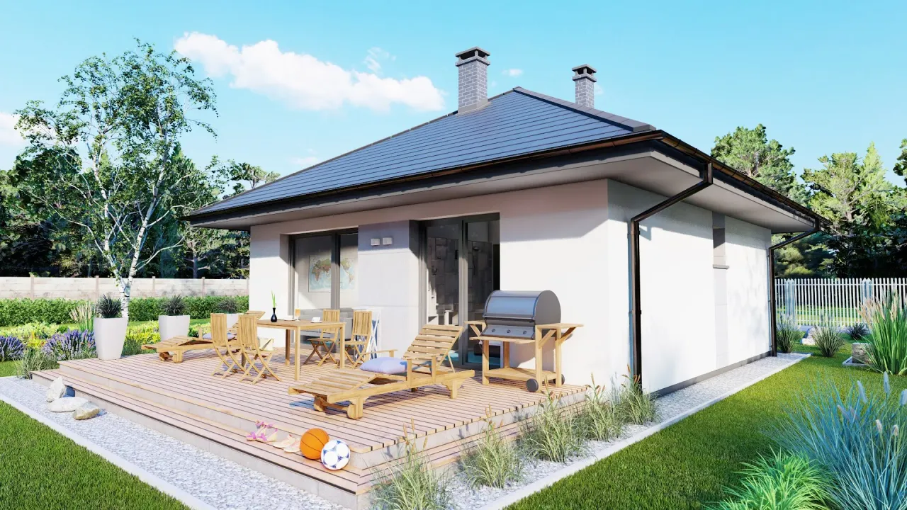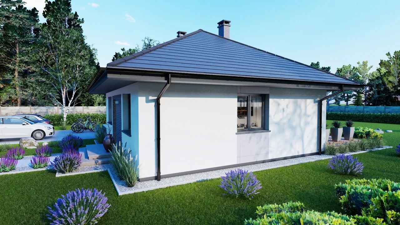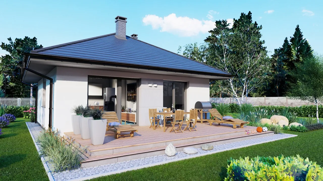 Interesuje nas projekt domu, który łączy funkcjonalność z nowoczesnym stylem, a projekt Dom Parterowy 22S zdaje się to doskonale realizować. Zwraca uwagę otwarta przestrzeń dzienna, co sprzyja wspólnemu spędzaniu czasu. Przemyślany układ pomieszczeń jest praktyczny i pozwala na optymalne wykorzystanie powierzchni. Duże przeszklenia dodają wnętrzom jasności i stwarzają przyjemny kontakt z otoczeniem. Całość prezentuje się elegancko i nowocześnie, tworząc przyjazne miejsce do życia dla rodziny.