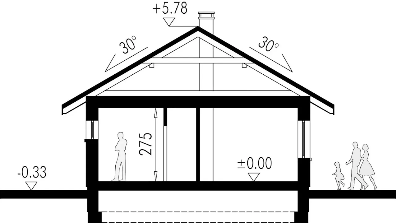 Wypełnij formularz i otrzymaj rysunki w pdf z dokładnymi wymiarami budynku i pomieszczeń (długość, szerokość, wysokość) dla projektu Dom Parterowy 24S