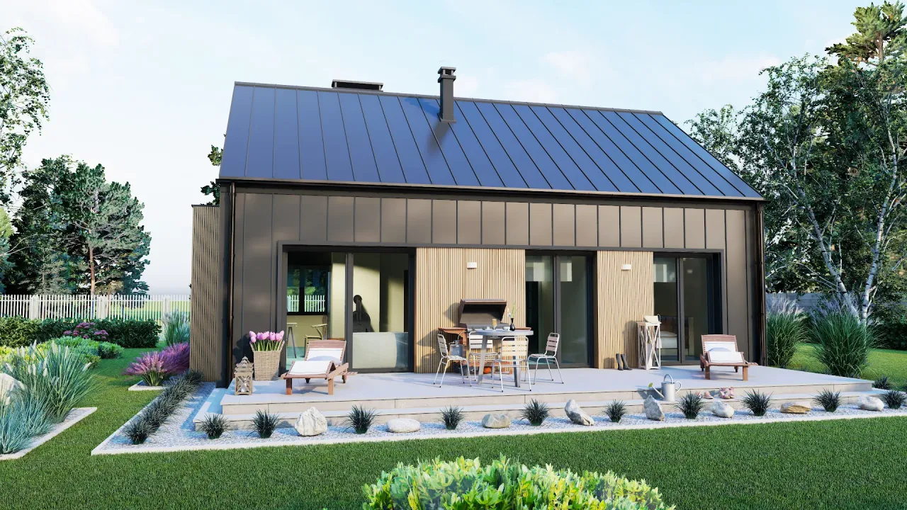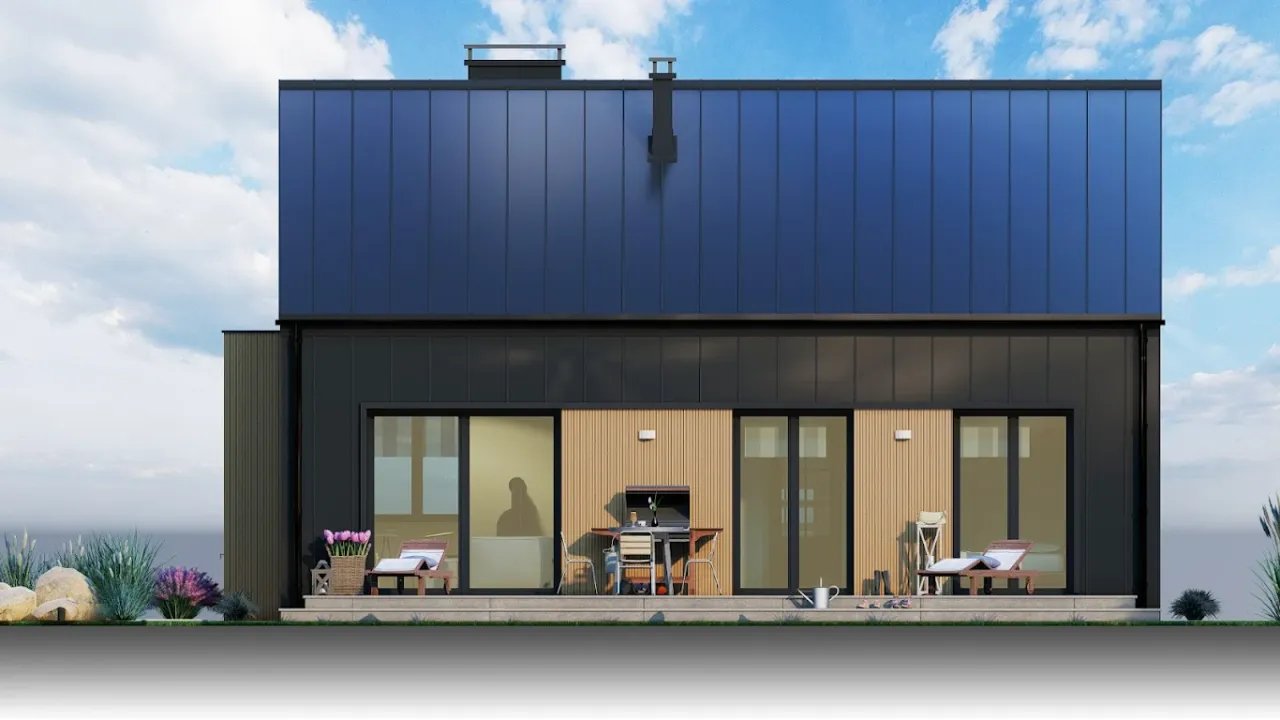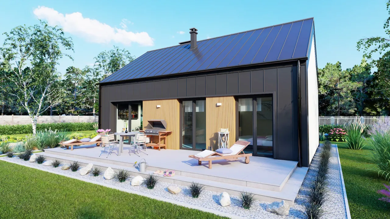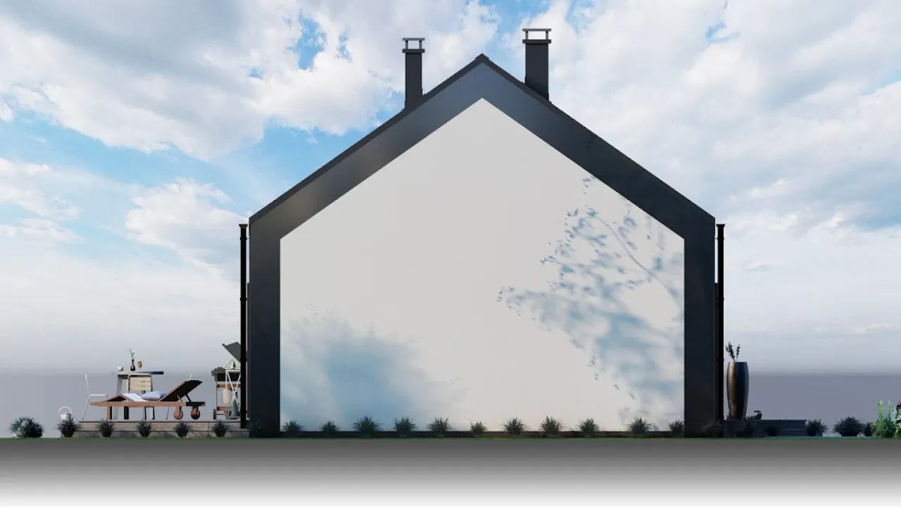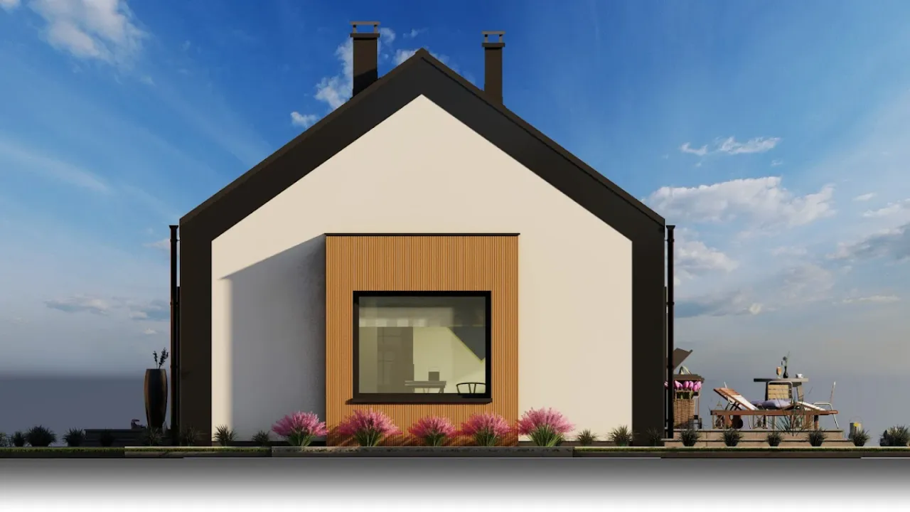 Projekt domu parterowego oferuje funkcjonalne i wygodne rozwiązania dla rodziny. Elegancka bryła budynku łączy nowoczesność z klasycznymi elementami architektonicznymi, co sprawia, że harmonijnie wpisuje się w otoczenie. Przestronny układ pomieszczeń promuje maksymalne wykorzystanie przestrzeni, a jednocześnie zapewnia wygodę codziennego życia. Wnętrza zaplanowane są z myślą o komforcie, z otwartą kuchnią, przytulnym salonem oraz wyraźnie oddzielonymi sypialniami, co umożliwia swobodne funkcjonowanie każdego członka rodziny. Duże przeszklenia sprzyjają nasłonecznieniu wnętrz i integracji z ogrodem, co jest idealnym rozwiązaniem dla tych, którzy cenią sobie bliskość natury. Każdy detal został starannie przemyślany, aby dom spełniał oczekiwania współczesnych użytkowników.