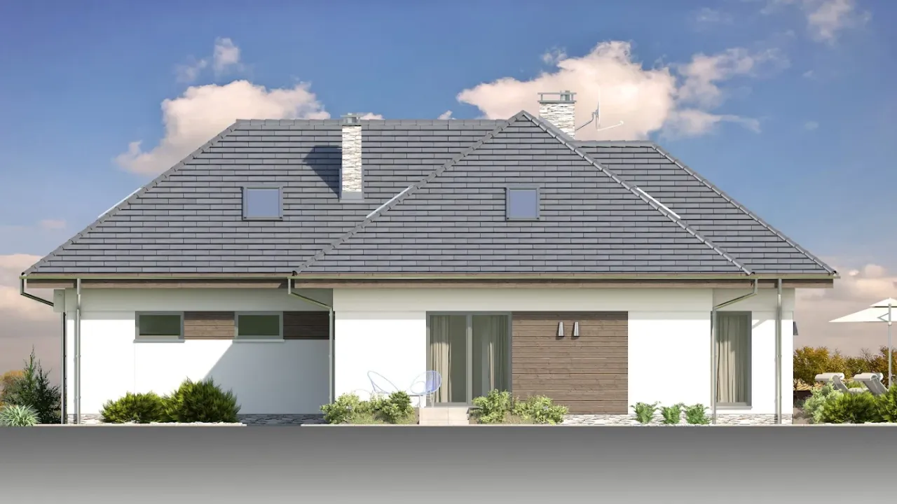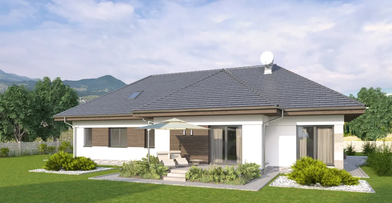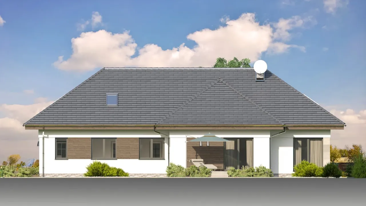 Projekt Dom Parterowy 4 idealnie wpisuje się w wizję domu, który stanowi szeregowe odzwierciedlenie harmonii i funkcjonalności. Zaskakująco przestronne wnętrza, zaprojektowane z myślą o maksymalnym komforcie, łączą elegancję z nowoczesnością. Co istotne, minimalizm architektoniczny na zewnątrz z rewelacyjnie zaplanowaną przestrzenią wewnętrzną tworzy idealne tło dla rodzinnego życia. Ogromny atut stanowi także płaski dach, który dodaje całej konstrukcji wyjątkowego, modernistycznego charakteru, jednocześnie umożliwiając efektywne wykorzystanie przestrzeni na dachu, na przykład do stworzenia zielonego tarasu. Ten dom to nie tylko miejsce do życia, ale przestrzeń, która inspiruje i odpowiada na potrzeby nowoczesnej rodziny ceniącej sobie styl i komfort.