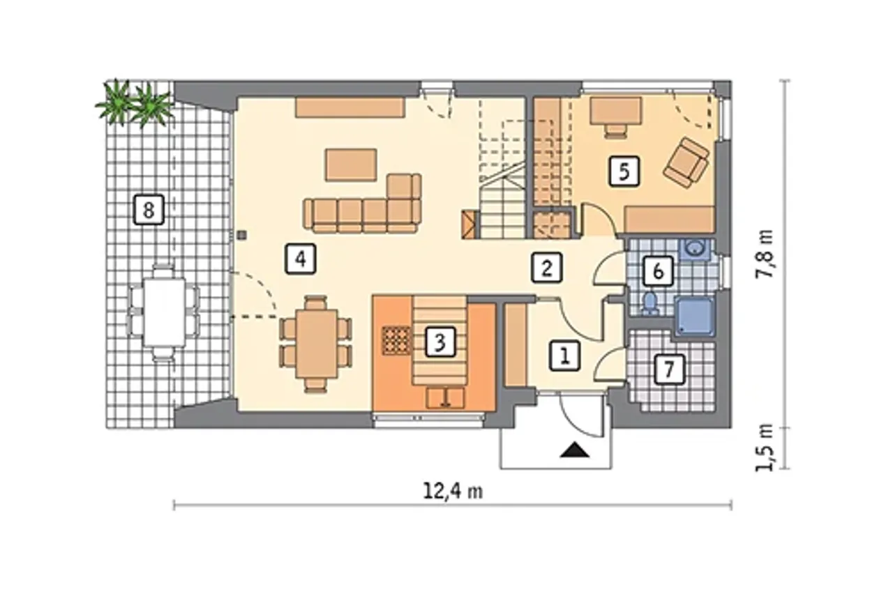 Wypełnij formularz i otrzymaj rysunki w pdf z dokładnymi wymiarami budynku i pomieszczeń (długość, szerokość, wysokość) dla projektu Dom perfekcyjny (z wentylacją mechaniczną i rekuperacją) - EC402