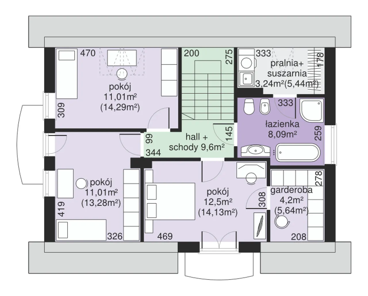 Wypełnij formularz i otrzymaj rysunki w pdf z dokładnymi wymiarami budynku i pomieszczeń (długość, szerokość, wysokość) dla projektu Dom przy Alabastrowej 33