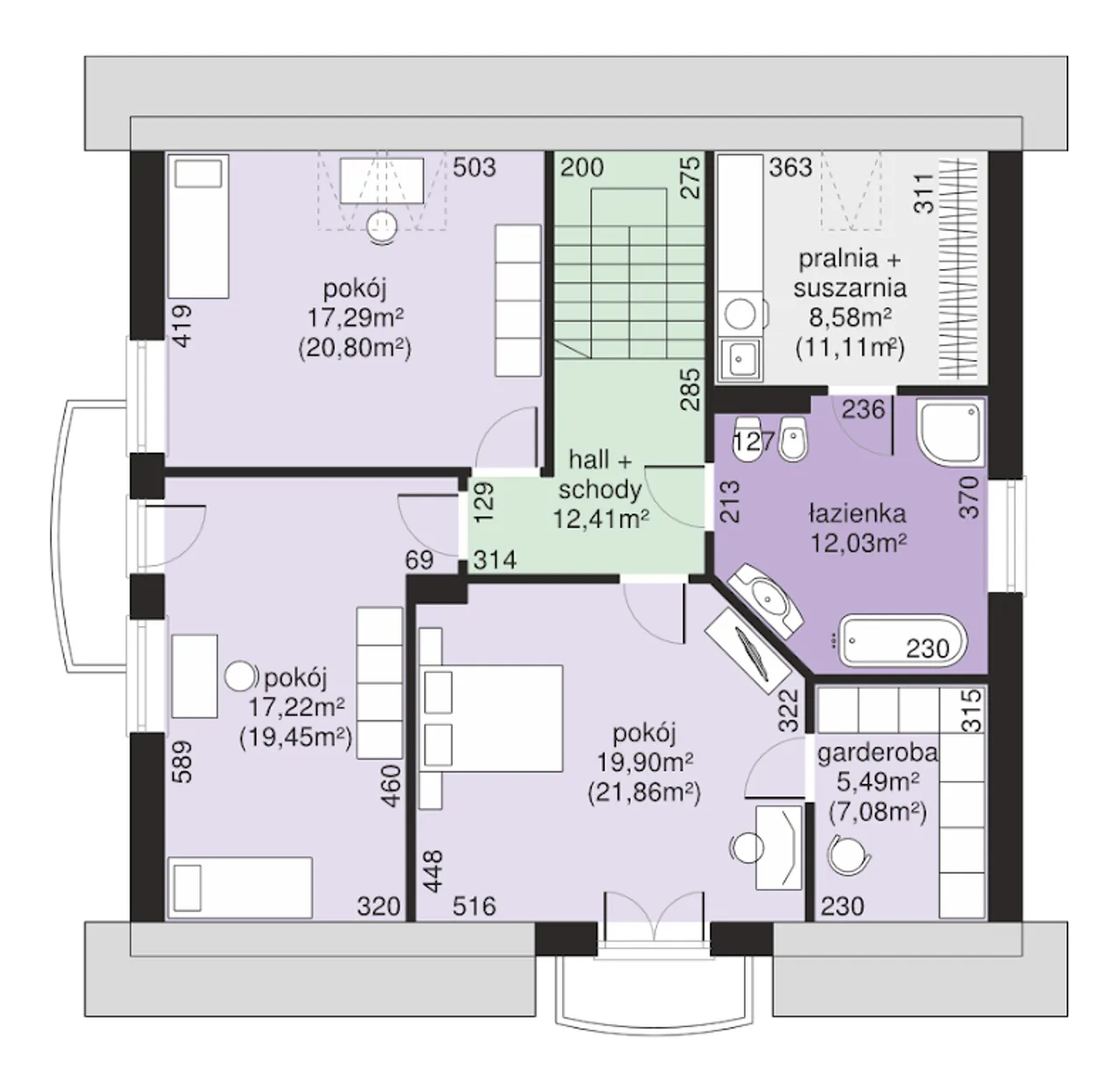 | 3. Pralnia + suszarnia | 8,58 (11,11) m² |